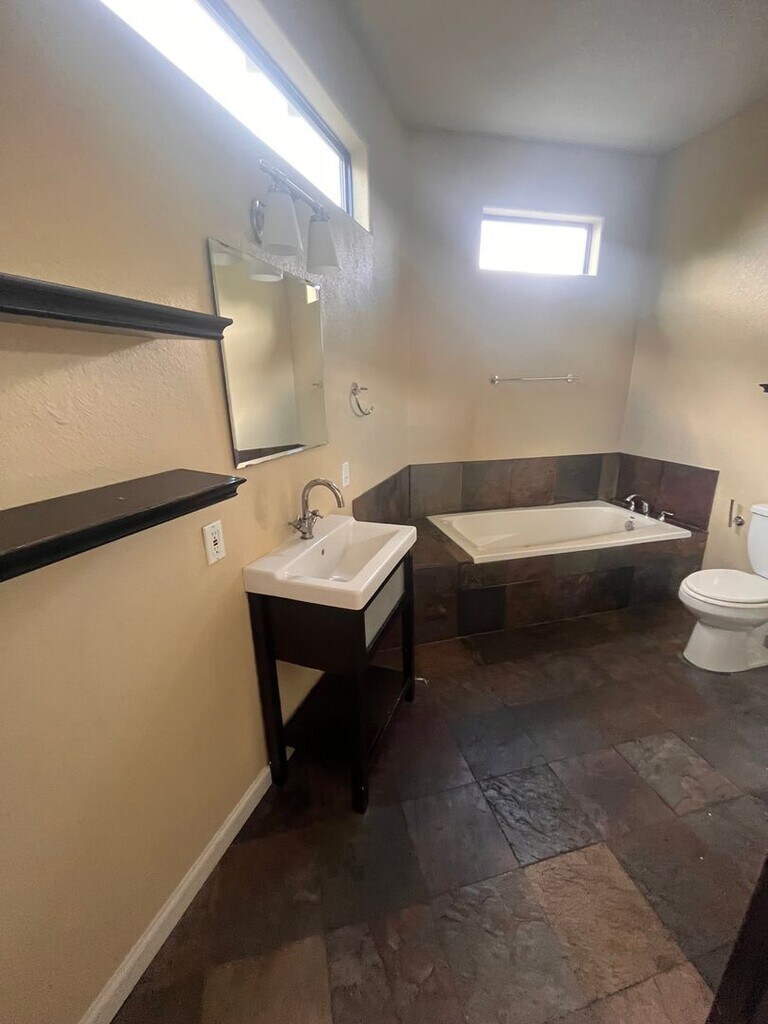 August Pre-lease. Updated, spacious home with bamboo wood and slate tile flooring throughout. The kitchen features dark wood cabinets, granite countertops, and stainless steel appliances. Downstairs includes a half bathroom and a laundry room with washer and dryer included. All bedrooms are upstairs. The primary bedroom has a walk-in closet and an ensuite bathroom with double vanities and a jetted tub. The home also includes a large three-car garage. Fully fenced in front yard and shared deck with the A unit. Located close to UT campus in the Hancock/Hyde Park neighborhood, just blocks from HEB, 24 Hour Fitness, and the Mueller area. Available for August 13th 2026 - July 31 2027 - $40/month landscaping fee - Tenants pay all utilities - Security deposit due within 48 hours after application approval - First full months rent due after lease signing Pet Fees: $200 pet deposit + $200 pet fee/per pet MLS ID 1707783