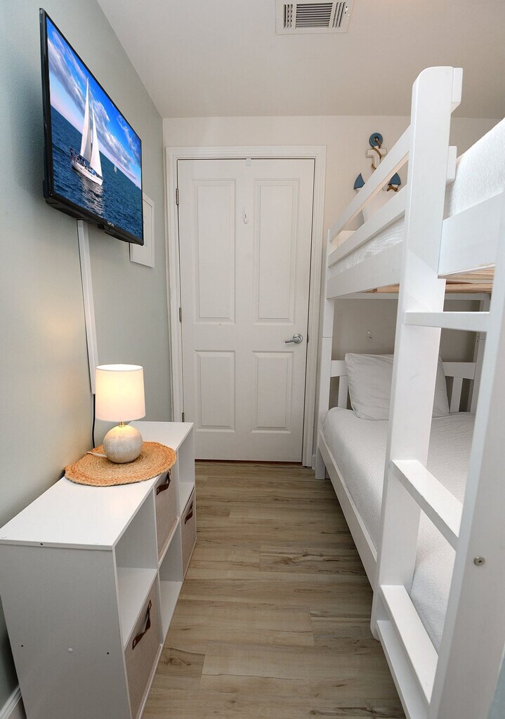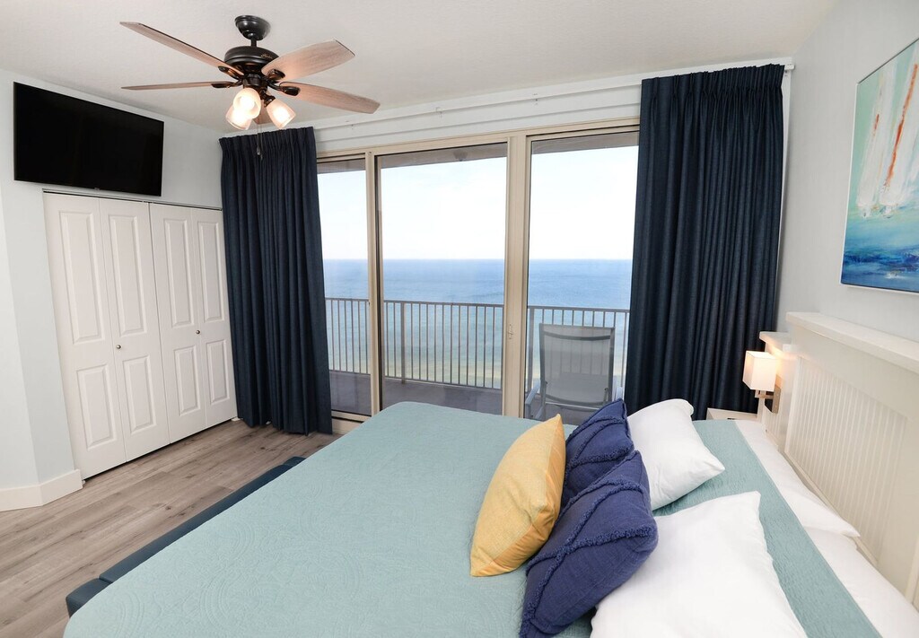 The advertised rate of $5,421/month is the lowest available price, based on a 30 day(s) stay with a move-in date of October 20, 2026. Rates vary depending on the duration of stay, season, and other parameters. For exact pricing and additional pricing components, please visit our website and enter your desired move-in and move-out dates. The rate is applicable when billed upfront; it can be higher if billed in multiple payments. Feel at home in this impressive 3-bedroom, 2.5-bathroom condo, unit 1820, at Shores of Panama, offering a level of luxury and design unmatched in Panama City Beach. This completely remodeled apartment provides an unbeatable vacation destination with the emerald-green Gulf of Mexico as a backdrop, designed for comfort, style, and pure Florida decadence. The family-friendly layout sleeps up to eight people, providing expansive, airy space for easy vacation living. The open-plan living room and kitchen is the true centerpiece of this apartment. The living area boasts a stunning 65-inch TV mounted within a custom-built wall accent, complemented by plenty of comfy seating for enjoying your favorite streaming channels or a family movie night. The stylish kitchen has been remodeled to include all new cabinetry, exquisite white granite counters, and stainless steel appliances, including an oversized fridge/freezer with an ice maker and water filter, a built-in microwave, upgraded track lighting, and a Keurig coffee system, plus all the cooking tools and utensils you could possibly need. This apartment features two master suites for maximized space and privacy. The first master bedroom includes a built-in king-size bed, a 32-inch TV with streaming capabilities, and an en-suite remodeled bathroom with a tub/shower and vanity. The second master, located on the beach side, boasts balcony access and gulf views, a built-in king-size bed, a 43-inch TV with streaming capabilities, and an en-suite bathroom with a stunningly upgraded tile and glass walk-in shower. The third bedroom offers built-in queen-size bunk beds, unique to this unit, with each bed having its own 24-inch TV with streaming and gaming capabilities, and a sturdy oversized ladder for added comfort and safety. For your convenience, complimentary high-speed Wi-Fi is available throughout the unit for all devices, and a full-size washer and dryer make laundry easy. Shores of Panama charges a parking and resort fee of $90.00 per stay, which provides your parking pass and wristbands for all guests, granting access to all amenities including private beach access, pools, and the fitness center. Covered parking is available in the garage, but vehicles with a height exceeding 6 feet 11 inches or a length exceeding 19 feet are not permitted. Beach activities and rental services, such as jet skis, chair and umbrella services, banana boat rides, and para-sailing, are available. Shores of Panama is a 23-story gulf-front property boasting an idyllic location directly on the white sandy beach, just steps from the sand with private beach access. The setting provides a quintessential beach getaway minutes from all of Panama City Beach's award-winning attractions, dining, and shopping. Enjoy paddle boarding, kayaking, fishing, or simply hunting for shells on the 27 miles of unspoiled beaches. Shores of Panama is undergoing exterior construction, which may be loud and disruptive, with construction noise beginning at 8:00 am and ending at 5:00 pm. Check-in is at 4:00 pm central time, and check-out is at 10:00 am central time. Any booking made within 48 hours of arrival will require a credit card and matching ID on file. Registered guests must be over the age of 25 unless accompanied by a parent or guardian. A rental agreement must be completed, which asks for the names and ages of all occupants. No pets are allowed. Panama City Beach Ordinance 1667 requires all occupants to be 21 years of age or older, unless a family with children. All occupants over the age of 18 will be required to submit a government-issued ID, such as a driver's license, at the time of booking. Our trusted partner is legally required to keep these IDs on file for inspection from the City of Panama City Beach and to obtain the names and ages of all occupants of the property, regardless of age, for inspection. This ordinance is in effect for High Impact Periods, from March 1 to Memorial Day, and other dates as determined by the city when needed. You must be at least 25 years of age to rent this property. During Spring Break, the minimum acceptable ratio is one person 25 years of age for every two persons under 25 years of age. Guests under the age of 18 must be accompanied by a parent or adult guardian while on property after 10:00 pm, including parking garages, pool decks, walkways, elevators, and beach access points. Minors under the age of 18 must be accompanied by a parent or adult guardian during curfew hours of 8:00 pm to 5:00 am while inside the city limits of Panama City Beach, including sidewalks, the sandy beach, parking lots, stores, and public parks. No more than two minors can accompany one parent or adult guardian. Violation of this ordinance can result in fines to the parent or guardian and eviction from the property by the city. Registration Number: 4406 [SI]