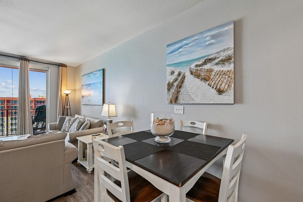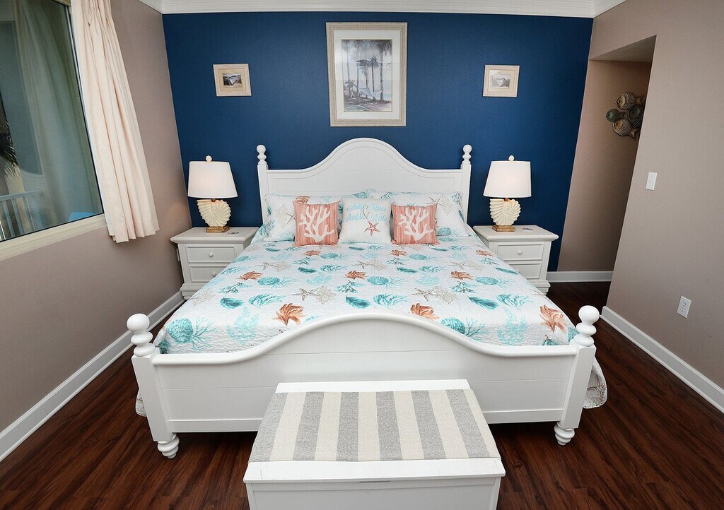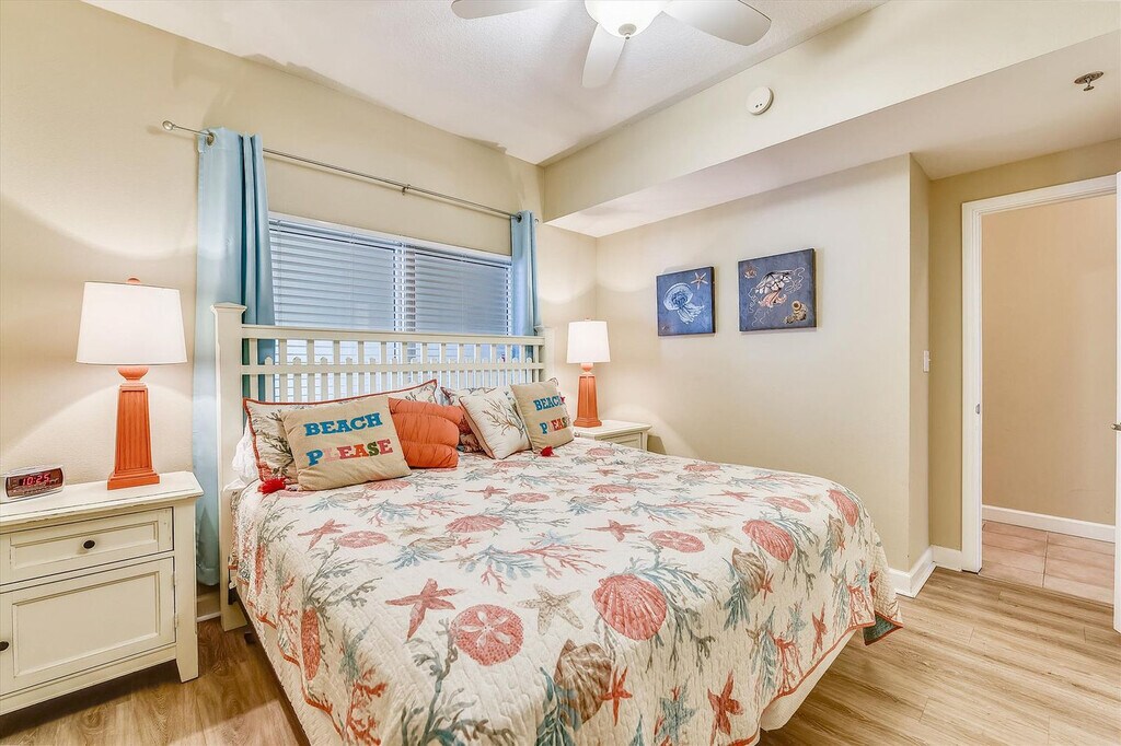 The advertised rate of $4,370/month is the lowest available price, based on a 30 day(s) stay with a move-in date of October 20, 2026. Rates vary depending on the duration of stay, season, and other parameters. For exact pricing and additional pricing components, please visit our website and enter your desired move-in and move-out dates. The rate is applicable when billed upfront; it can be higher if billed in multiple payments. Feel at home in Shores of Panama 412, a fantastically upgraded 1-bedroom (plus bunk room), two-bathroom condominium located on the 4th floor of Shores of Panama Resort. This stylish and beachy apartment offers a spacious layout with sleeping room for up to 6 people and is just 4 flights up, which is a huge plus during peak times if you want to avoid the elevators. Designed for comfort, this apartment features comfy furnishings throughout and an impressive balcony stretching from one side to the other, boasting magnificent views of the beach and tropically landscaped pools. The open-plan living, dining, and kitchen area is bright and airy, perfect for relaxing. Enjoy the 40-inch HD TV with Roku for streaming your favorite shows. The kitchen is fully equipped with granite countertops, all major appliances including a brand new fridge/freezer, and a Keurig coffee maker. A full-size washer and dryer are provided for convenience. The master bedroom offers a king-size bed with luxurious linens, a flat screen TV, and a private bathroom with a shower/tub combo and vanity area. The second bedroom features bunk beds with memory foam mattresses and soft linens, a separate room ideal for kids. A second full bathroom also provides a tub/shower combo. For additional sleeping, the comfy sofa pulls out to a full-size bed with a mattress pad and linens. A private parking space is included. A parking and resort fee of $75.00 per stay provides a parking pass and wristbands for all guests, granting access to amenities including a gorgeous lagoon-style, 13,966 sq. ft. gulf-side pool with fountains, a large pool deck and recreational features, a gulf-side hot tub, a large heated indoor pool and hot tub, a covered on-site parking deck, private beach access, two tiki bars serving lunch and dinner, beach activities and rental services, and free high-speed internet access. As a guest of this apartment, you receive one free daily activity provided by a trusted partner, with choices including Dave & Buster's ($20 free gameplay), SkyWheel at Pier Park (one ticket), WonderWorks, or Island Time Sailing Dolphin Cruise (seasonal). This offer is not included for guests staying over 27 days. This apartment is fantastically situated in the heart of Panama City Beach, just steps from the sugar white sands with private beach access. It is within easy walking distance of some of the area's best dining, exciting attractions for all ages, and numerous gift stores, offering all the ingredients for an unforgettable getaway. The registered guest occupying this apartment must be 25 years of age or older and must complete a rental agreement. Panama City Beach Ordinance 1667 requires all occupants to be 21 years of age or older, unless a family with children. All occupants over the age of 18 will be required to submit a government-issued ID, such as a driver's license, at the time of booking. This ordinance is in effect for High Impact Periods, from March 1 to Memorial Day, and other dates as determined by the city. Guests under the age of 18 must be accompanied by a parent or adult guardian while on property after 10:00 pm, and during curfew hours of 8:00 pm to 5:00 am while inside the city limits of Panama City Beach. No more than two minors can accompany one parent or adult guardian. Violation of this ordinance can result in fines to the parent or guardian and eviction from the property by the city. Pets are not allowed. The complex requires all service animals to be pre-approved prior to arrival and does not accept emotional support animals as they are not considered service animals under Florida law protecting lodging establishments. Smoking or vaping in the apartment is strictly prohibited and will result in a $1000 fine. This apartment is self-check-in, but guests must stop by the concierge to pay for and pick up their registration packet. Please note that booking this property under false pretenses regarding age requirements, or allowing occupants under 25 years of age to stay without the registered guest's presence, will result in severe penalties, including cancellation fees (up to 100%), eviction, and no refund. Registration Number: 4406 [SI]