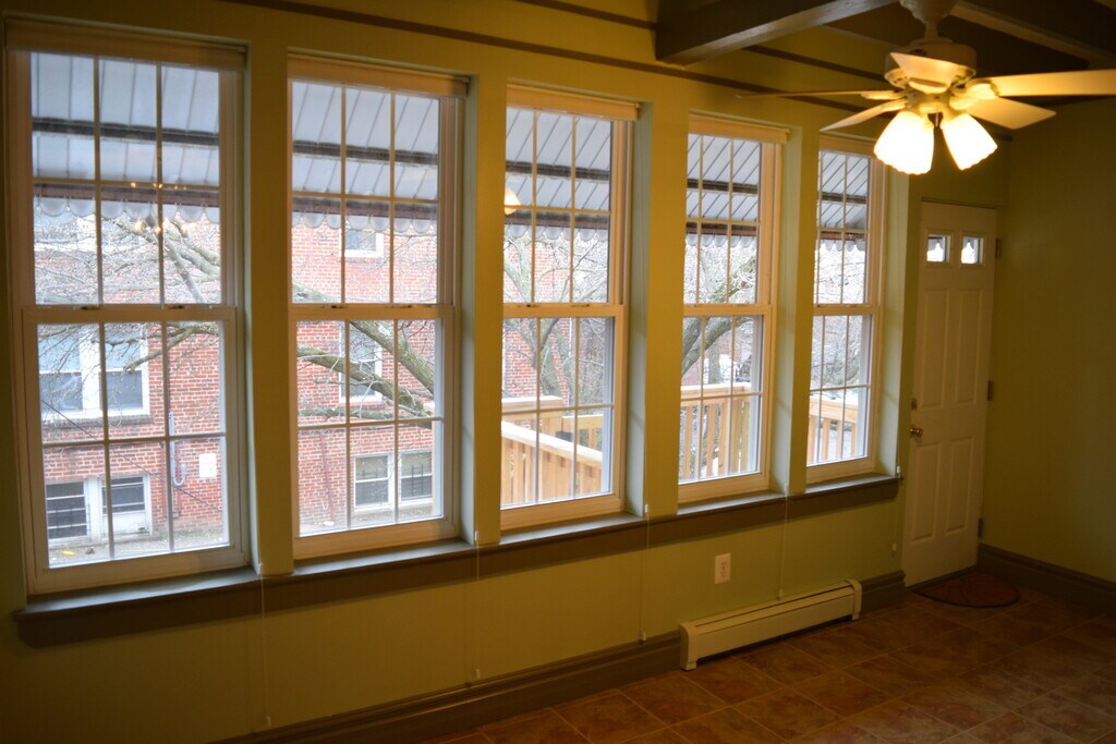 Remarkable detail in this classic rowhome. 3 bed rooms and 2 and a half baths. Beautiful hardwood floors throughout, custom trim woodwork in living room and dining room with double column arched walkway separating living and dining. Upgraded kitchen with s/s appliances. Spacious light-filled breakfast nook with attached rear-deck. Sunroom at back of house, upstairs. Large finished family room in walk-out basement. One car garage with room for second car in driveway. Lease Terms: 12-month minimum lease Tenant responsible for all utilities No Pets No smoking inside of home $50 application fee per adult applicant