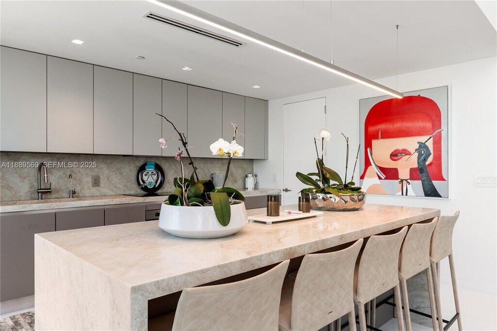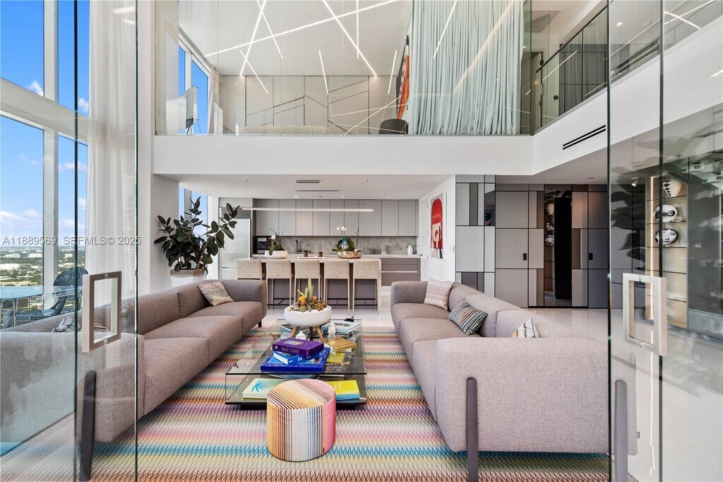 Esteffany CastrillonThis sophisticated loft-style residence is located on the 22nd floor of the iconic Ten Museum Park, designed by visionary architect Chad Oppenheim with interiors by B&G Design. Encompassing 1,802 SF, this fully furnished 2-bedroom, 2.5-bath home offers dramatic 20-foot floor-to-ceiling impact glass and breathtaking east-facing views over Museum Park, Biscayne Bay, and the Miami and South Beach skyline. Facing east, the residence welcomes the sunrise each morning, filling the space with soft natural light throughout the day and creating a calm, expansive atmosphere. The interiors are impeccably curated with high-end furnishings, natural materials, and a refined minimalist aesthetic. Sculptural elements including a smoked-glass and steel staircase and custom vertical millwork add architectural depth, while subtle crystal accents are thoughtfully integrated to enhance clarity, balance, and overall energy without overpowering the design. The sleek kitchen features custom Italian cabinetry and an oversized natural stone island, ideal for both everyday living and entertaining. Elegantly grained flooring, imported marble surfaces, motorized solar shades, a full-size Miele washer and dryer, two assigned parking spaces, and air-conditioned storage complete the residence. Ten Museum Park offers exclusive five-star wellness amenities, including services powered by the world-renowned Clinique La Prairie, setting a global standard for resort-style living.