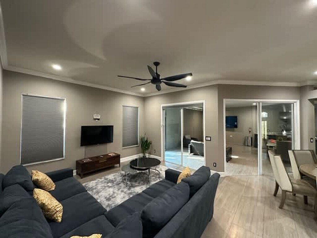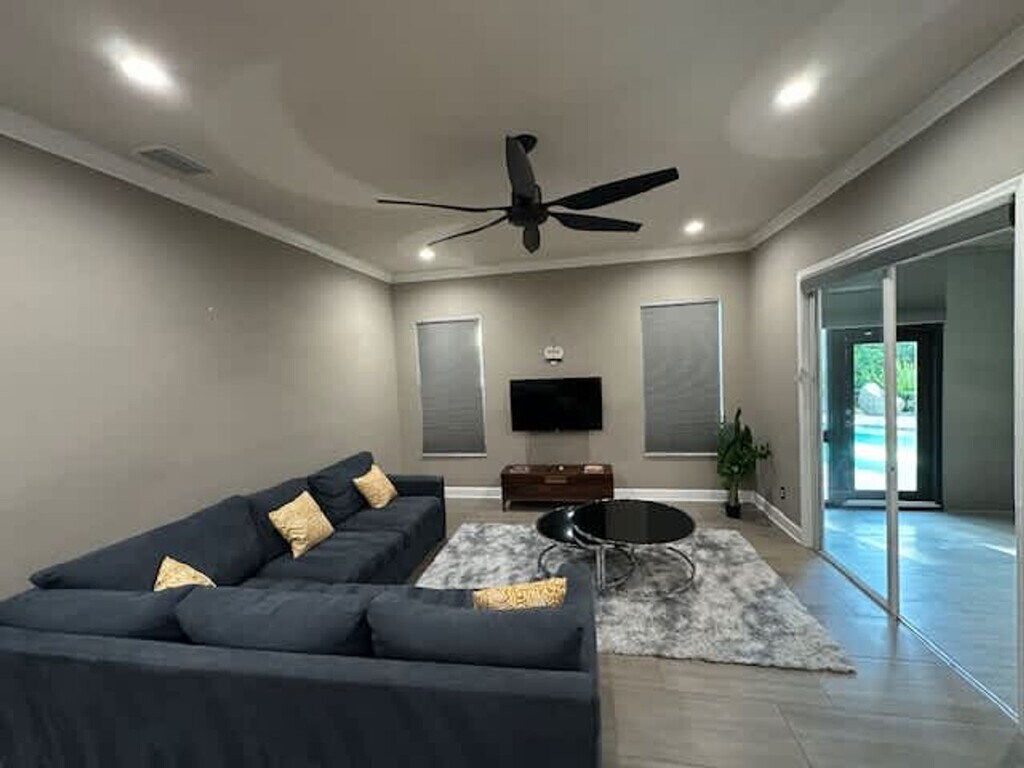 Feel at home in this Riverview Estates apartment, where luxury and entertainment collide in perfect harmony. This stunning property is tailor-made to satisfy the most discerning taste. This apartment features an open-concept design with a gourmet kitchen, making it a haven for every aspiring culinary genius. The many room offerings ensure that everyone has their oasis of relaxation, providing ultimate comfort and privacy. Step outside into the backyard oasis and discover a world of entertainment possibilities, including a heated pool, sauna, mini putt-putt course, fire pit, and outdoor kitchen with 2 grills. Pets are welcome upon request, and an additional pet fee may apply. The Riverview Estates is ideally situated to explore the best of Riverview. A short drive will take you to a selection of dining options, catering to all tastes, from quick bites to fine dining experiences. Nearby, you'll find a mix of local shops and larger stores for your shopping needs. The neighborhood itself is characterized by its peaceful ambiance and well-kept surroundings. Enjoy the convenience of this location, making it easy to experience the local lifestyle and create lasting memories during your stay. Find shopping and dining options a mere 10-minute drive from the property. Explore the shops at Brandon Mall, just 15 minutes away. Plan a fun day at Busch Gardens Tampa Bay, reachable in about 50 minutes. Football fans can get to Raymond James Stadium in around 40 minutes, and Clearwater Beach is also a 40-minute drive away for a relaxing day by the water. Noise levels must remain strictly below 60 dBA during the day. Outdoor music and excessive noise (yelling, noise amplification, musical instruments, or animal barking) must be kept to a respectful minimum at all times. Outdoor music is not permitted after 10 PM. Refrain from using amplification devices or musical instruments outdoors or in a way that they are audible outside the home at any time. Quiet hours in the neighborhood are strictly enforced from 10 PM to 8 AM. Smoking is strictly prohibited inside the home, but it is permitted outdoors only. [SI]