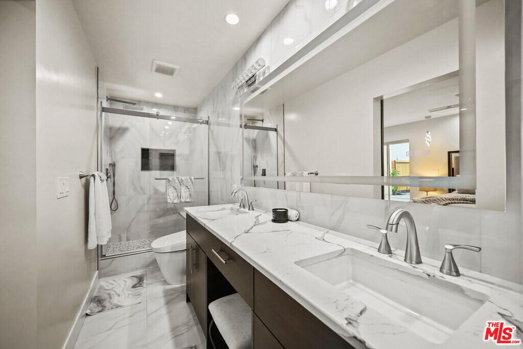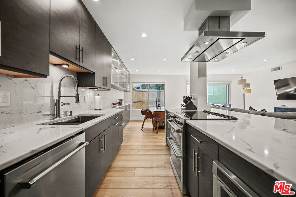 In the heart of West Hollywood, just off Kings Road and steps from Gelson's, this home puts you at the center of it all, where morning coffee, groceries, and dinner plans are all a quick stroll away. You are minutes from Plummer Park for an easy reset, and close to West Hollywood Park and the West Hollywood Library for workouts, laps, and a beautiful place to post up with a book. Inside, the space feels crisp, calm, and thoughtfully upgraded. The kitchen is designed for real life and real hosting, with stainless steel appliances, a KitchenAid refrigerator, a dishwasher, farmhouse sink, and tons of storage, plus an island that naturally becomes the gathering spot with barstools pulled up and drinks poured. The living area is genuinely spacious with a dedicated dining zone, a large coat closet, and abundant storage that keeps everything looking clean and uncluttered. The primary suite reads like a retreat, complete with a walk in closet and an en suite bath featuring a Toto toilet. The second bedroom is brilliantly flexible with an installed Murphy bed, so it can instantly shift from guest space to office to workout room without sacrificing flow. A shared outdoor patio space adds an airy indoor outdoor moment that feels especially right for WeHo evenings. When you want to lean into the neighborhood, you are close to the Pacific Design Center and the shopping and dining energy around Melrose, including Cecconi's for a classic patio meal. MLS# 26644979