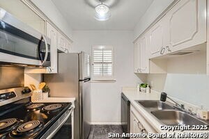Welcome home to the charming and highly desirable Olmos Park Gardens community! This move-in-ready 1-bedroom, 1-bath condo offers a low-maintenance lifestyle in a prime central location. Enjoy lovely architectural details like a bright bay window in the living room and a refreshed kitchen with stainless steel appliances. Residents benefit from amenities including a pool, clubhouse, and the convenience of three on-site laundry facilities and front-door trash pickup. Located just minutes from The Quarry, Trinity University, and the University of the Incarnate Word, this condo is perfect for students or professionals.