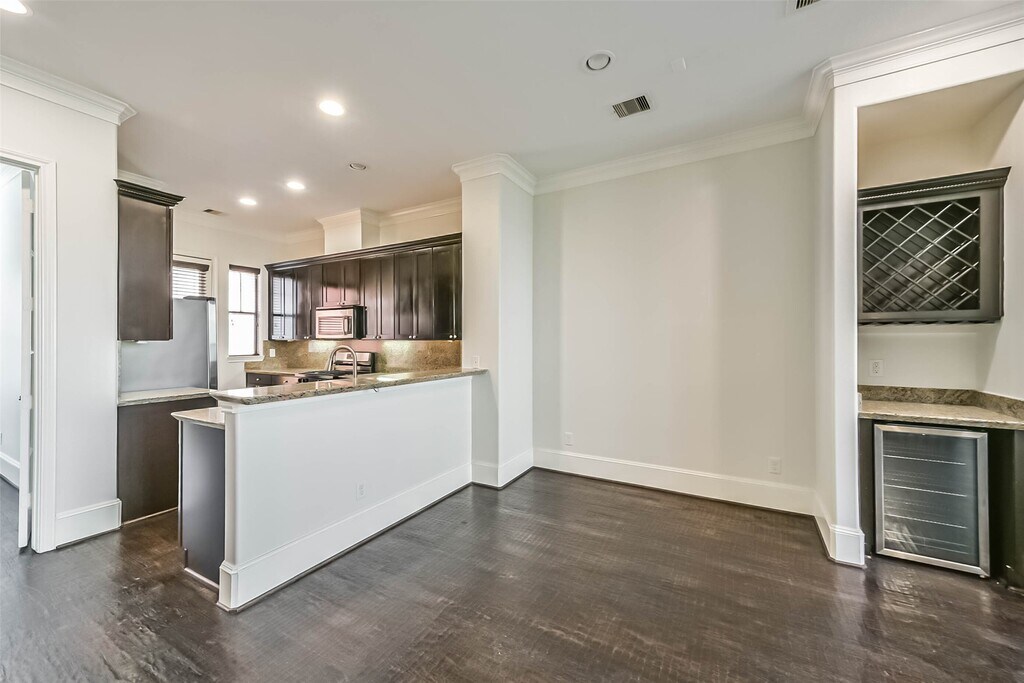 This 3 story townhome in the Heights area offers a spacious layout with a large bedroom on 1st floor w/extra living space,a full bathroom. 2nd floor has an open living room,dining room,well-equipped kitchen,stainless steel appliances,and a balcony off kitchen,with room for your gas grill (not included). French doors lead to a versatile room that can be a bedroom or office,with a full bathroom adjacent. The 3rd floor hosts primary bedroom,a luxurious bath,walk-in closets,and a cozy reading nook. A loft with a wall of shelves,space for exercise equipment,and a built in desk,completes the top floor. High ceilings and large windows throughout,provide lots of natural light. New privacy fence. You're in walking distance to great restaurants,entertainment,coffee shops and markets. All parking in the Heights area,is free. Refrigerator,washer and dryer included; along with water,trash,sewer,alarm,and pest control. Tenant only pays gas and electric. Move in ready! MLS# 82309879