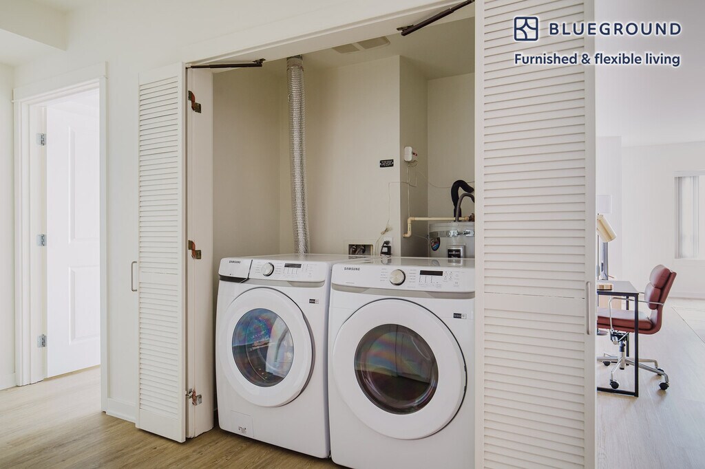 Feel at home wherever you choose to live with Blueground. You’ll love this charming West Bellevue furnished two bedroom apartment with its modern decor, fully equipped kitchen, and bright living room. Ideally located, you’re close to all the best that Bellevue has to offer! (ID #SEA823) The advertised rate of $4,830/month is the lowest available price, based on a 12 month(s) stay with a move-in date of May 9, 2026. Rates vary depending on the duration of stay, season, and other parameters. For exact pricing and additional pricing components, please visit our website and enter your desired move-in and move-out dates. The rate is applicable when billed upfront; it can be higher if billed in multiple payments. Brokers are welcome to reach out. Were you looking for an unfurnished lease? Try Blueground instead and upgrade from unfurnished to furnished living: - Furnished at rates comparable to unfurnished - No setup or furniture costs - save thousands - Move-in ready - save time, just bring your suitcase Designed with you in mind Thoughtfully designed with bespoke finishes, modern furnishings, and a fully equipped kitchen, you’ll enjoy that “I’m home” feeling with this Blueground apartment. Whether you’re lounging in your beautiful living room streaming the latest and greatest entertainment on the smart TV or premium wireless speaker, or getting some well-earned rest on the superior quality mattress with luxury linens, you’ll fall in love with everything this West Bellevue apartment has to offer. This apartment also offers in-apartment laundry. Sleeping arrangements Queen Bed, 63in/160cm Queen Bed, 63in/160cm Amenities Building amenities unique to this two bedroom apartment include an on-site: - Doorman - Dryer - Elevator - Washing machine - Lounge - Parking - Pets allowed - Rooftop BBQ Arrival and ongoing support The entire apartment is yours to enjoy! Throughout your stay, you’ll have access to our Client Experience team through the Blueground App. You can schedule additional cleanings, submit maintenance requests, and view our neighborhood recommendations with just a few taps. We’ll share all details upon confirmation of your stay. Other things to note Building amenities may have an extra cost. This Blueground apartment has flexible lease options, allowing you to book it for one month, a year, or more. Pets are welcome, though weight limits and breed restrictions apply and may incur fees. Parking is offered based on availability and is subject to a fee. We take great pride in ensuring every photo displayed is shot in our own units with our actual furnishings. That said, we regularly refresh our decor and furniture arrangement, which may differ from what’s pictured. [SI]