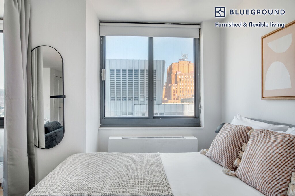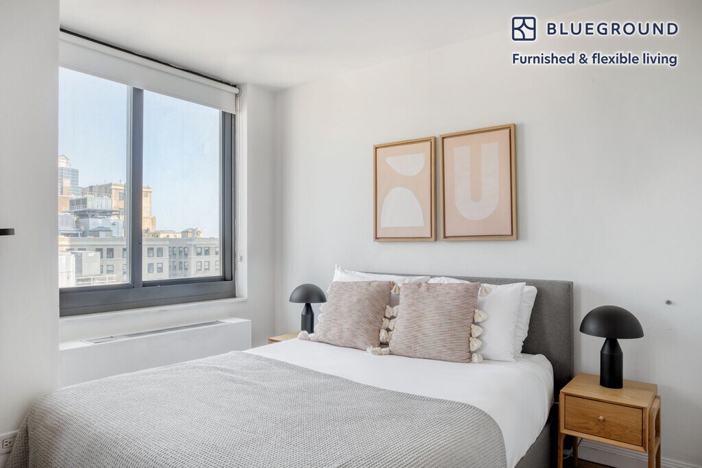 Discover the best of New York, with this one bedroom apartment in Tribeca with high floor views over the city. It’ll be easy to simply show up and start living in this furnished apartment with its fully equipped kitchen, living room, and our dedicated, on-the-ground support. (ID #NYC118) The advertised rate of $4,320/month is the lowest available price, based on a 1 month(s) and 29 day(s) stay with a move-in date of November 25, 2025. If you’re looking for a 1-year stay, the rate is $6,170/month. Rates vary depending on the duration of stay, season, and other parameters. For exact pricing and additional pricing components, please visit our website and enter your desired move-in and move-out dates. The rate is applicable when billed upfront; it can be higher if billed in multiple payments. Brokers are welcome to reach out. Were you looking for an unfurnished lease? Try Blueground instead and upgrade from unfurnished to furnished living: - Furnished at rates comparable to unfurnished - No setup or furniture costs - save thousands - Move-in ready - save time, just bring your suitcase Designed with you in mind Gorgeous furniture, fully equipped kitchen, smart TV, and a premium wireless speaker are just a few of the amenities you’ll find inside this one bedroom apartment. Ideally located in New York, you’ll find a lot to love outside as well. When you’re ready to relax, you’ll be happy to discover every Blueground bedroom comes with superior quality mattresses, luxury linens, and cozy towels. We handle everything so you can simply show up and start living. Sleeping arrangements Queen Bed, 63in/160cm Amenities Building amenities unique to this one bedroom apartment include an on-site: - BBQ Area - Doorman - Dryer in building - Elevator - Swimming pool - Washing machine in building - Lounge - Pets allowed Arrival and ongoing support The entire apartment is yours to enjoy! Throughout your stay, you’ll have access to our Client Experience team through the Blueground App. You can schedule additional cleanings, submit maintenance requests, and view our neighborhood recommendations with just a few taps. We’ll share all details upon confirmation of your stay. Ideally Located This furnished apartment is in the vibrant neighborhood of Tribeca. Formerly an industrial center, nowadays it is considered an artists' mecca, and one of the most exclusive neighborhoods in the city. The award-winning public and private schools draw families to nest nearby. Locals can be seen strolling along the Hudson River or dining at a wine bar. Quaint cafes and inviting green park space make this a great place to call home. Tribeca is one of the more well-rounded and well-connected neighborhoods in Lower Manhattan. By subway, the Financial District is only 10 minutes away. Other things to note Building amenities may have an extra cost. This Blueground apartment has flexible lease options, allowing you to book it for one month, a year, or more. Pets are welcome, though weight limits and breed restrictions apply and may incur fees. Brokes CYOF. We take great pride in ensuring every photo displayed is shot in our own units with our actual furnishings. That said, we regularly refresh our decor and furniture arrangement, which may differ from what’s pictured. [GO]