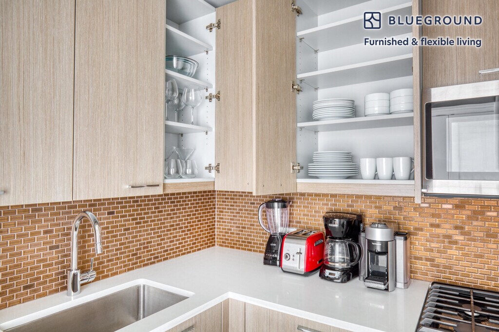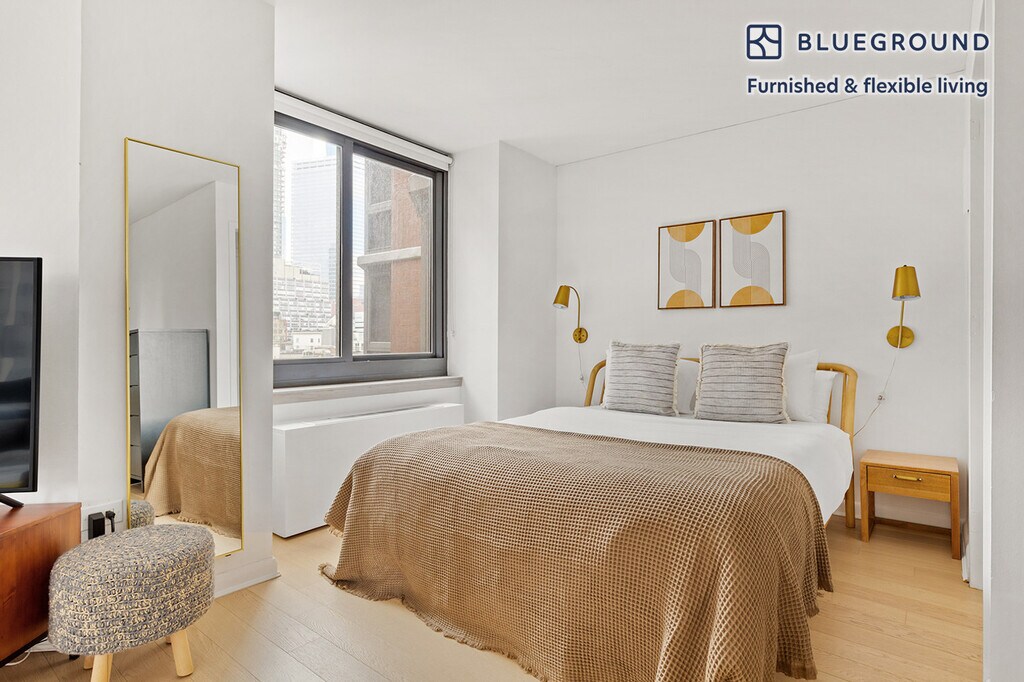 Feel at home wherever you choose to live with Blueground. You’ll love this cozy Tribeca furnished studio apartment with its modern decor, fully equipped kitchen, and cheery living room with great views. Ideally located, you’re close to all the best that New York has to offer! (ID #NYC245) The advertised rate of $6,050/month is the lowest available price, based on a 12 month(s) stay with a move-in date of May 1, 2026. Rates vary depending on the duration of stay, season, and other parameters. For exact pricing and additional pricing components, please visit our website and enter your desired move-in and move-out dates. The rate is applicable when billed upfront; it can be higher if billed in multiple payments. Brokers are welcome to reach out. Were you looking for an unfurnished lease? Try Blueground instead and upgrade from unfurnished to furnished living: - Furnished at rates comparable to unfurnished - No setup or furniture costs - save thousands - Move-in ready - save time, just bring your suitcase Designed with you in mind As with any Blueground apartment, you’ll find a thoughtfully designed space complete with beautiful furniture and a fully equipped kitchen in this studio property. And, thanks to our superior quality mattresses, fully stocked linens, and towels, you can relax knowing you’ll always feel comfortably at home. When you’re ready for some fun, you can take in the New York vibes or bring the entertainment to you with the premium wireless speaker or smart TV. Sleeping arrangements Queen Bed, 63in/160cm Amenities Building amenities unique to this studio apartment include an on-site: - BBQ Area - Doorman - Dryer in building - Elevator - Swimming pool - Washing machine in building - Lounge - Pets allowed Arrival and ongoing support The entire apartment is yours to enjoy! Throughout your stay, you’ll have access to our Client Experience team through the Blueground App. You can schedule additional cleanings, submit maintenance requests, and view our neighborhood recommendations with just a few taps. We’ll share all details upon confirmation of your stay. Ideally Located This furnished apartment is in the vibrant neighborhood of Tribeca. Formerly an industrial center, nowadays it is considered an artists' mecca, and one of the most exclusive neighborhoods in the city. The award-winning public and private schools draw families to nest nearby. Locals can be seen strolling along the Hudson River or dining at a wine bar. Quaint cafes and inviting green park space make this a great place to call home. Tribeca is one of the more well-rounded and well-connected neighborhoods in Lower Manhattan. By subway, the Financial District is only 10 minutes away. Other things to note Building amenities may have an extra cost. This Blueground apartment has flexible lease options, allowing you to book it for one month, a year, or more. Pets are welcome, though weight limits and breed restrictions apply and may incur fees. Brokes CYOF. We take great pride in ensuring every photo displayed is shot in our own units with our actual furnishings. That said, we regularly refresh our decor and furniture arrangement, which may differ from what’s pictured. [SI]