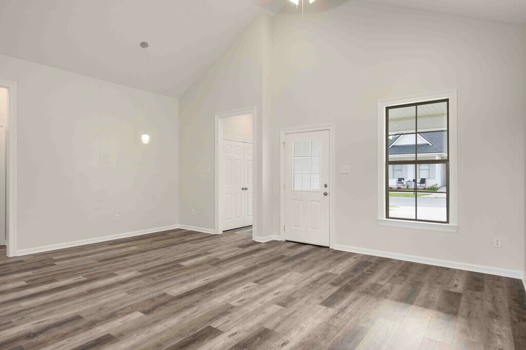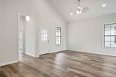 This charming 1,300 sq ft home has three bedrooms and two full bathrooms. The home is located in Youngsville on Santa Marta Drive off of Fortune Road. The interior of the home has a lovely, open floor plan consisting of a spacious living room, kitchen, and dining area. The living room area is designed with a cathedral ceiling, a drop down ceiling fan and led recess lighting. The home has 9 ft ceilings and the flooring is waterproof wood plank vinyl flooring through out the home. The kitchen has a pantry closet, stainless steel appliances, granite countertops, snack counter and a tiled backsplash. The home is designed with a split floor plan. Both bathrooms have modern fixtures and granite countertops. Master bathroom has a double vanity and a large walk in closet. The home is equipped with a tankless water heater and is an all electric home. The exterior of the home has a single carport and a fenced in backyard.
