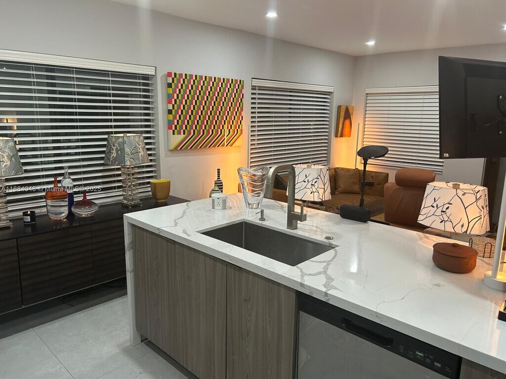 Fully renovated 1 bed 1 bath corner unit with plenty of lighting from 4 large windows, plus a private rear gated patio to enjoy. This unit has updated kitchen with quartz countertops with waterfall/electrical pop up outlets, pantry, garbage disposal, stainless steel appliances, new bathroom, impact windows/doors, new roof, washer/dryer in unit and central AC. One dedicated parking spot per unit. This unit will be available at end of October 2025 and is tenant occupied with easy showing.