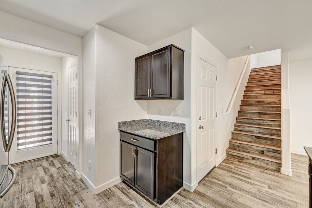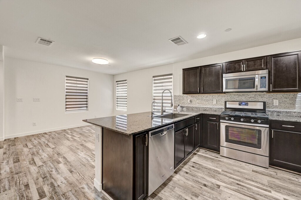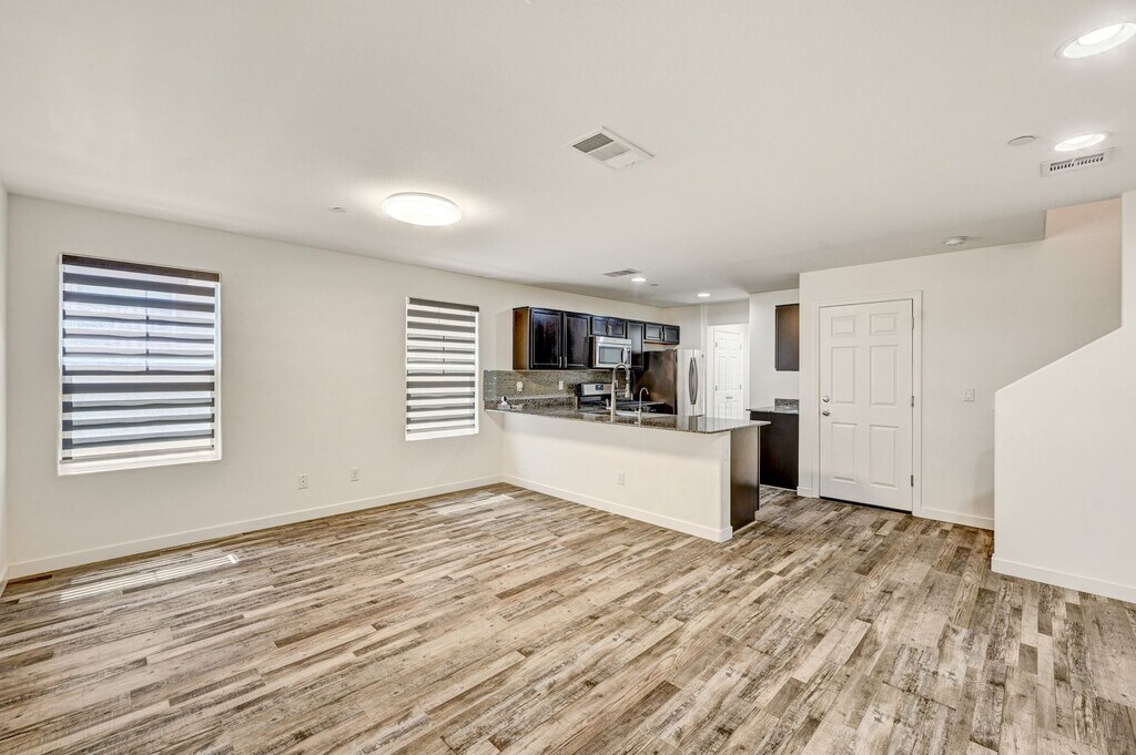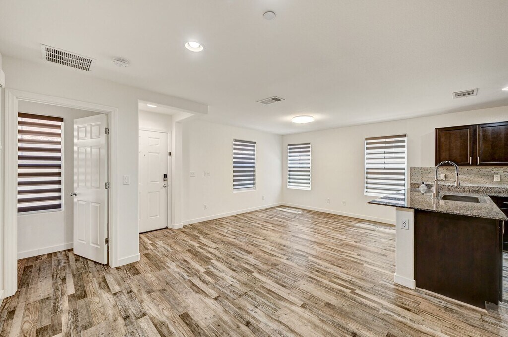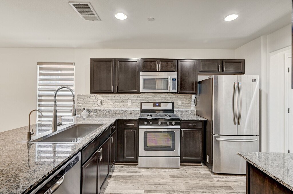 Exquisitely designed 3-bedroom, 2.5-bathroom townhouse in a gated community. The gourmet kitchen features granite countertops, a breakfast bar, stainless steel appliances, and an osmosis water filtration system at the sink. The living room is enhanced with upgraded built-in light fixtures, while luxury vinyl plank flooring flows throughout the home. Primary suite is downstairs and offers upgraded window shades, an elegant en-suite bath with an oversized shower and dual sinks, and a closet with a built-in secure storage safe. Upstairs, enjoy a spacious loft perfect for relaxation or work. The backyard is beautifully finished with pavers and low-maintenance artificial grass. Security screen doors are installed at both the main entrance and backyard access. All fees included in the listed rental price.