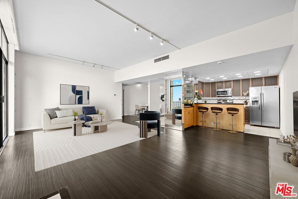 Welcome to The Wilshire Marquis, a full service luxury high rise ideally situated along the prestigious Wilshire Corridor in the heart of Westwood. This beautifully updated eighth floor condo offers two spacious bedrooms and two full bathrooms with a smartly designed layout perfect for professionals, roommates, or anyone seeking upscale living minutes from UCLA, Westwood Village, Century City, Beverly Hills, and the 405 Freeway. The formal double door entry opens to a large foyer and bright open concept living and dining area with sweeping views of Century City high rises, mirrored accent walls that expand the sense of space and light, and a built in wet bar with open glass cabinetry for elegant entertaining. The remodeled kitchen features granite countertops, stainless steel appliances, custom cabinetry, and a seamless flow into the living space. A full length private balcony offers a peaceful outdoor retreat with dramatic city views. Both bedrooms are generously sized and feature open views of Century City. The primary suite includes a walk in closet and an updated en suite bathroom with granite counters and custom cabinetry, while the second bathroom offers matching finishes and a tub shower combination. The second bedroom is nearly equal in size to the primary, adding flexibility for shared living or home office use. Additional features include newer wood look laminate flooring throughout, central air and heat, in unit stackable washer and dryer, and a prime location just steps from the elevator lobby for added convenience. The Wilshire Marquis offers resort style amenities including an Olympic length heated lap pool, spa, sundeck, fully equipped fitness center with sauna and locker rooms, three tennis courts including two rooftop courts with panoramic views, barbecue and garden patio areas for outdoor dining, a multipurpose recreation room, and a beautifully attended lobby with twenty four hour concierge and security. Residents also enjoy ample guest parking in a secure multilevel garage and two unassigned gated parking spaces included with the lease. EV charging stations are available on site, and the building is located within the highly sought after Fairburn Elementary School district. Professionally cleaned and move in ready, this residence presents a rare opportunity to lease a luxury condo in one of West Los Angeles's most iconic full service buildings with unmatched access to top rated schools, world class dining and shopping, major commuter routes, and some of LA's best cultural and academic destinations. MLS# 25595515
