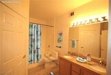 Fantastic downstairs two-bedroom condo in the desirable Chateau Versailles gated community. Located near parks, trails and shopping, the complex offers full resort style amenities with beautifully landscaped common areas. The unit has an attractive and spacious open floor plan with separate bedrooms that are comfortably sized. It features a covered patio off the main living dining area and hard surface flooring throughout. The kitchen has plenty of cabinets with a pantry, breakfast bar, granite counters and entry to an adjacent laundry room. The primary bedroom includes double sinks as well as a large walk-in closet with a stand-alone shower and separate tub. The 2nd bedroom has direct entry to the guest bath which is also accessed from the hallway. This is great unit in a great neighborhood. Small pets only considered.