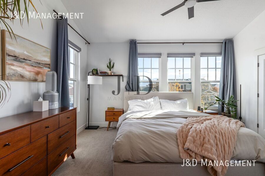 Discover modern living in the heart of Daybreak just steps from the lake, private fireplace pavilions, scenic walking trails, and an array of grocery, dining, and lifestyle conveniences all within a 5 minute walk. This beautifully designed home showcases premium quality materials throughout, featuring a 9' open-concept layout, stylish designer finishes, and a cozy gas fireplace that anchors the main living space. The chef-inspired kitchen is an entertainer's dream, complete with a double-wide quartz island with pendant lighting, gas cooktop, double ovens, and a large walk-in pantry for extra storage. Upstairs, the luxurious primary suite offers vaulted ceilings, a spacious walk-in closet, double sinks, and stunning mountain views. Your personal retreat to relax and unwind. Additional 2 bedrooms, bathroom, and linen closet for storage. Enjoy outdoor living year round beneath the spacious front covered porch, or host guests on the covered patio that leads to the 2-car garage, featuring a EV charging outlet and finished with durable epoxy flooring for a clean and polished look. Professionally Managed by J&D Management. Application available by visiting ** Additional Fees and Services: Pet Fees (breed restrictions apply): $50/month per pet Resident Benefit Package: $55.00/month Group Rate Internet (GRI): 1gig @$65.00/month* A PET SCREENING PROFILE IS A REQUIRED PART OF THE APPLICATION PROCESS – PLEASE CHECK YOUR EMAIL AFTER APPLYING FOR ADDITIONAL INSTRUCTIONS. All approved applicants must enroll in the Resident Benefits Package (RBP) as part of their lease agreement. This package includes, credit building, up to $1 million in Identity Theft Protection, HVAC air filter delivery for eligible properties, move-in concierge service to easily set up utilities and home services during your move-in, our top-notch resident rewards program, on-demand pest control, and other benefits! Please note that the square footage provided is an approximation, and we recommend verifying the space before committing. To secure the property, a holding deposit is required within 24 hours of application approval, and renters' insurance is mandatory before taking possession. Please be aware that policies are subject to change without notice. High-speed Internet is included with rent at a discounted bulk rate through Second Nature; residents simply activate service after lease signing, with availability and terms subject to change. -YOUR TRUSTED PROPERTY ADVISORS- Access Control Bbq Area Central A/C City View Close To Freeways Close To Schools Close To Shopping Common Building Forced Air Heating Game Room Garage Gym Room In Unit Laundry Luxury Vinyl Flooring Meeting Room Park View Private Entrance Security System Trash/Recycling Via Hoa Vaulted Ceilings Walk In Closets Water View Water/Sewer Via Hoa
