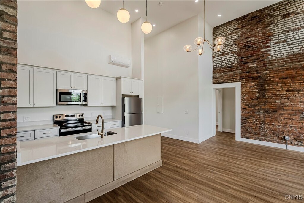 Apartment Loft #5 – (2) Bedroom (2) Bath (1) Office or possible 3rd bedroom - Walk-in closet– 1350 SF Floor #2 Baggs Square Historical (5) Unit newly renovated spacious luxury Loft Apartments is located in the heart of Utica’s historic downtown area. This building has 5 units that range from 550 – 1350 square feet. These luxury,custom designed apartments all feature stainless steel appliances in eat in kitchens that have islands and custom lighting that adds a great finishing touch to the apartments that are loaded with natural light beaming through large windows with blinds and views of downtown Utica. There is free off-street parking around the back,two private entrances on either side,gorgeous lux remodel with art deco/mid century finishes with marble floor entryways and bathrooms. All the units are brand new,never been lived in before. Each unit is uniquely designed with laundry in all the units. Encompassed with all of the historical features of exposed brick and extremely tall ceilings in 80% of the units. Don’t miss out on the opportunity to live in this stylish,modern and sound proof apartments in Utica’s most desirable location. Minutes from Wynn Hospital,Nexxus Center,restaurants,coffee shops and entertainment.. Optional WIFi package available for all residents. Pet Friendly with a onetime nonrefundable deposit. The building is comprised of the following units: (2) One bedroom – 550 – 600 square feet (1) Two bedroom with 2 baths and walk-in closet – 1200 square feet (2) Two bedroom lofts with offices that could possibly be used as a third bedroom,2 bathrooms and possible third bedrooms – 1100 – 1350 square feet