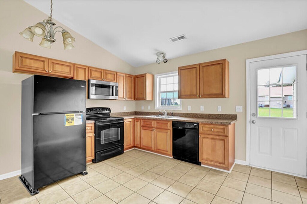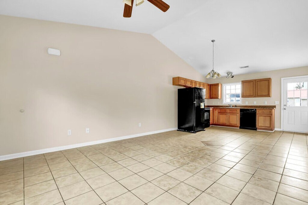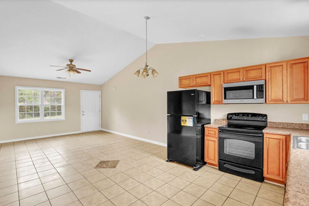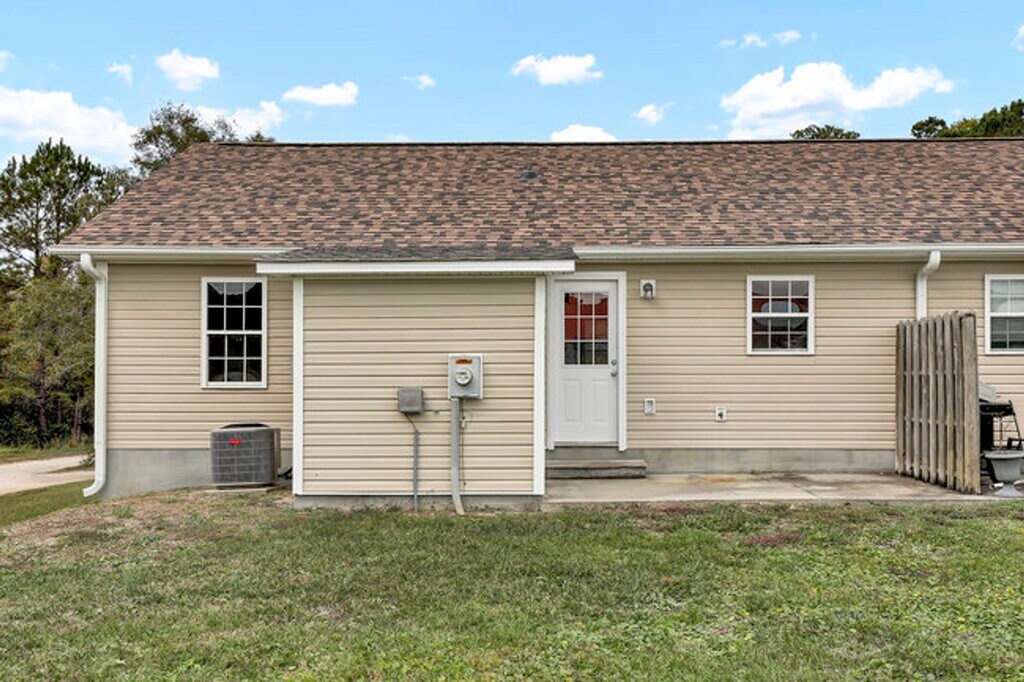 This inviting 2-bedroom, 2-bath home boasts an array of features, including updated appliances and fresh paint. Enjoy beautiful tiled floors throughout, complemented by new cozy carpet in the bedrooms. The kitchen and bathrooms feature elegant cabinetry. Outside, you'll find a back patio with a locked storage shed, a concrete parking pad, and plenty of yard space for summer enjoyment. Charming duplex available in Sneads Ferry, NC, just moments from stunning beaches, boating ramps, marinas, fishing spots, and the back gate to Lejeune.