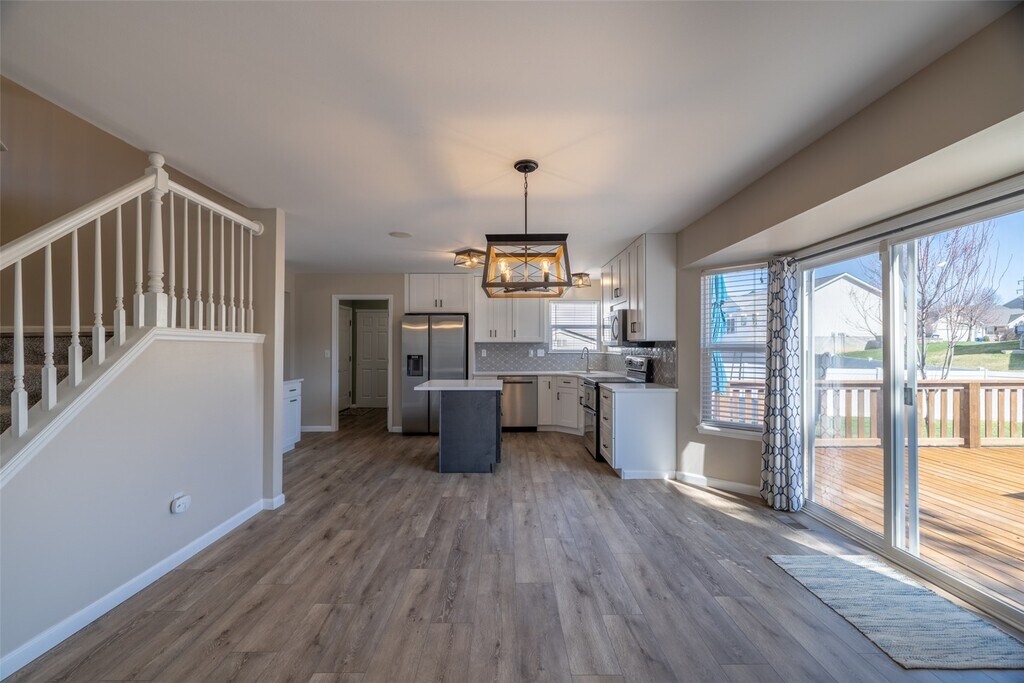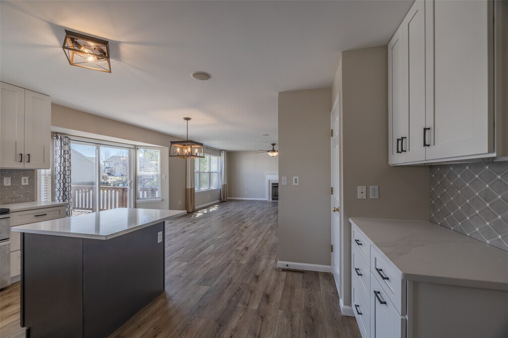 Welcome home. This warm and inviting two-story offers ample space, comfort, and thoughtful updates throughout. With four bedrooms, two full bathrooms, two half bathrooms, and a fully finished lower level this well-maintained home provides the perfect layout for everyday living and entertaining. Step inside the bright two-story foyer, where large windows fill the home with natural light and an electric shade provides privacy when needed. The main level features new laminate flooring (2025) and a comfortable flow between the family room and dining room, creating an ideal setting for gatherings with family and friends. A cozy gas fireplace anchors the living space. The beautifully remodeled kitchen (2025) is truly the heart of the home. Designed with both style and function in mind, it features new cabinetry with soft-close doors and drawers, quartz countertops, a large single-bowl sink, designer backsplash, and new appliances including a refrigerator and dishwasher. Convenience continues with a main-floor laundry room and a custom storage closet to keep everything organized. All appliances are included. Upstairs, the large primary suite is thoughtfully positioned on the opposite side of the home from the other three bedrooms, creating a sense of privacy and separation for owners. The spacious ensuite bath includes a relaxing soaking tub and separate shower. Three additional bedrooms provide plenty of space for family or guests. The fully finished basement expands the living area with laminate flooring, a large entertainment space, TV area, and a full bar complete with sink and refrigerator. Two additional finished rooms offer flexibility for a home office, workout room, or playroom. The pool table, bar fridge, and couch are included, making this level ready for game nights and entertaining. Step outside to enjoy a fantastic backyard ready for play. The huge deck has been recently stained and offers plenty of room for outdoor dining and gatherings. The large umbrella stays with the home. Mature landscaping, newly added trees, and perennial flowers provide beautiful color throughout the summer months. All landscape beds were freshly mulched in 2026, and the former garden area has been reseeded with fast-growing grass for a lush lawn this season. An irrigation system keeps the yard and landscaping green all summer long. The large shed is perfect for storage or yard tools. This home has been lovingly maintained and extensively updated, including fresh paint (2026), a new kitchen (2025), HVAC system with UV light (2025), water heater (2025), smoke detectors (2025), laminate flooring (2025), garage door opener (2024), roof and gutters (2022), radon mitigation system (2022), sump pump with battery backup (2020), lighting (2020), and much more. Ideally located, the home is walkable to Prairie View Elementary School, with convenient access to nearby shopping, dining, and several fantastic city and county parks just minutes away. Agent owned.