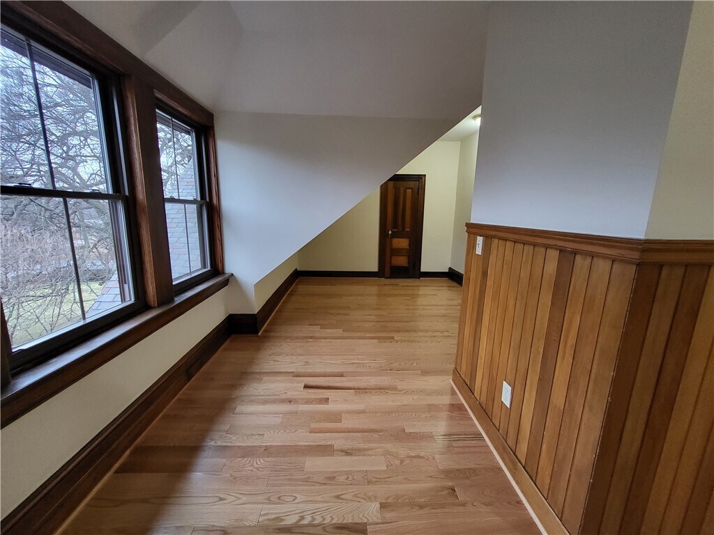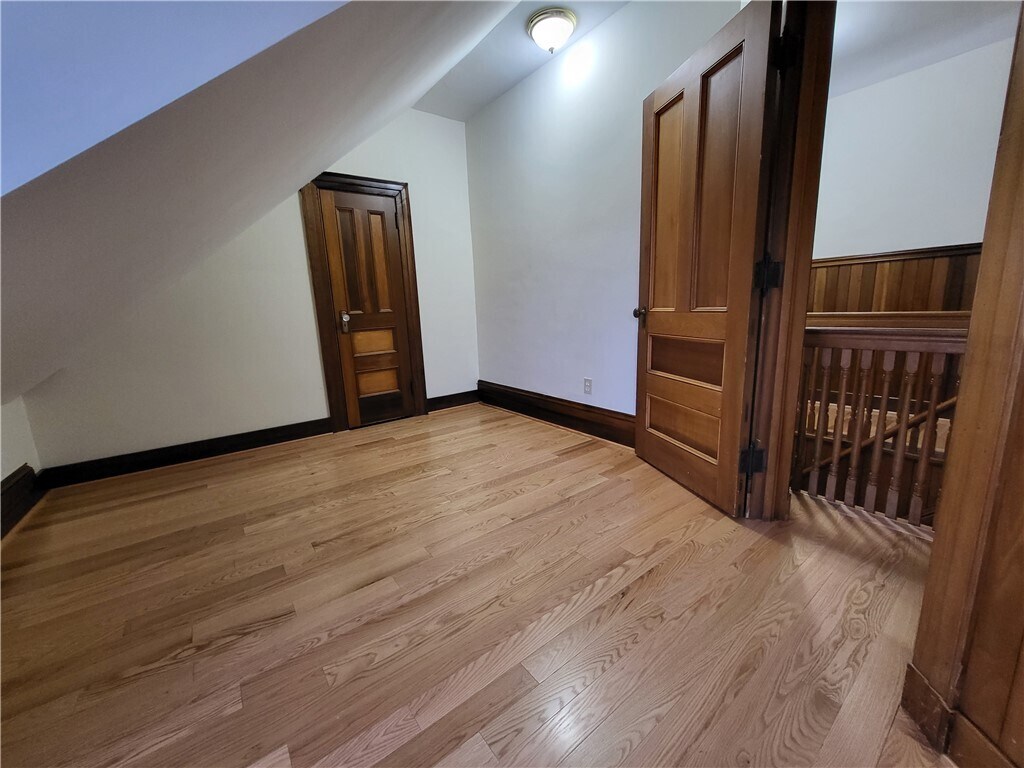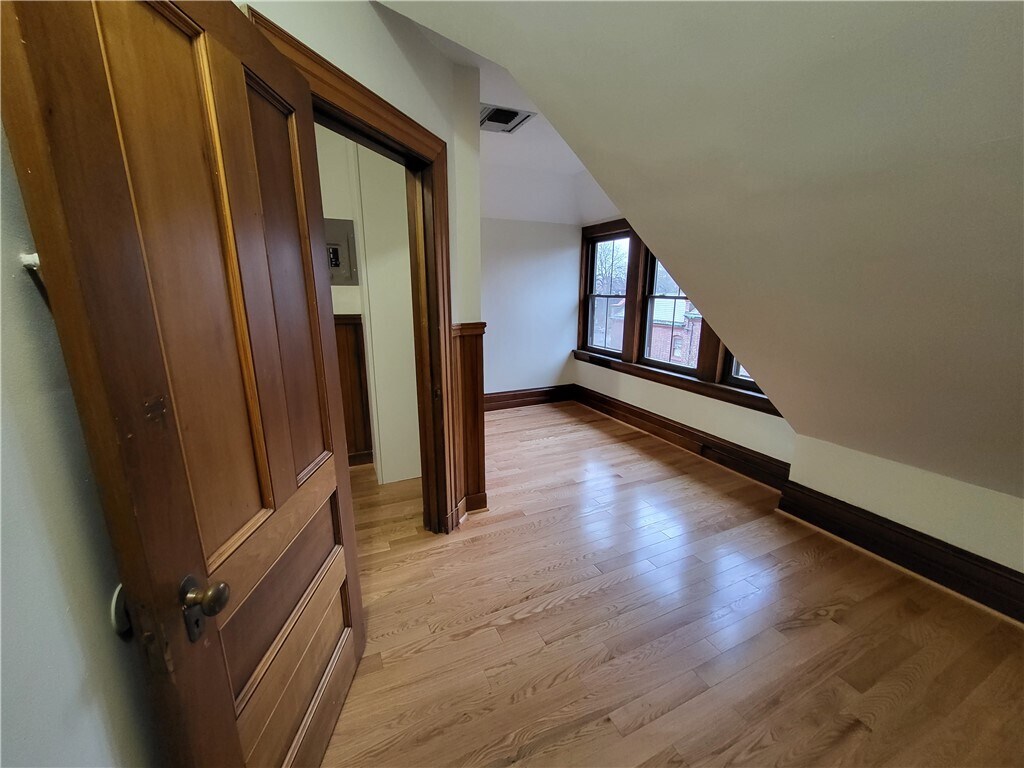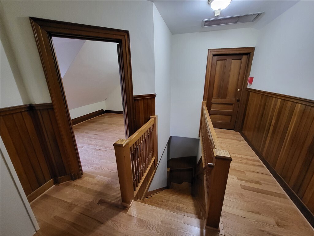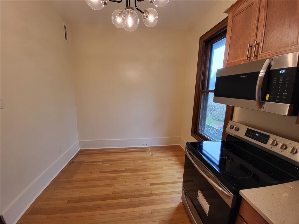 Beautiful two level apartment with brand new kitchen! First floor of unit also as an additional room that can be used for living room,bedroom,or office. New hardwoods on second floor. Second floor bedroom has an additional nook space perfect for a work at home office space. Easy access to additional attic storage space. 1 Covered carport parking space included with rent. Coin-op laundry in basement. Walking distance to many restaurants and shops on Park Ave. No pets and no smoking. Available April 1st. All applicants must meet minimum credit and income requirements.