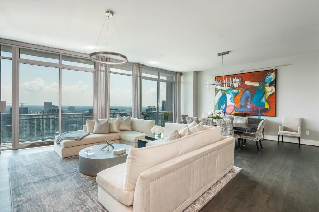 Step into sophistication with this extraordinary 3-bedroom plus office,3.5-bathroom penthouse,perfectly positioned in the heart of Midtown Atlanta. Offered fully furnished,this residence combines modern elegance with the ease of turnkey living. Walls of floor-to-ceiling glass frame sweeping skyline views,filling the open-concept living and dining spaces with natural light by day and a glittering cityscape by night. The chef’s kitchen is outfitted with premium appliances,sleek cabinetry,and a generous island for casual dining or entertaining. A private office offers the perfect space for working or creating from home. Each bedroom is thoughtfully designed as a private retreat with en-suite bathrooms,while the primary suite features a spa-inspired bath and custom walk-in closet. Multiple balconies extend the living space outdoors,creating seamless flow between indoor comfort and fresh-air city views. Residents of this exclusive building enjoy access to world-class amenities including a rooftop pool,state-of-the-art fitness center,and full-service concierge. With Piedmont Park,acclaimed dining,and cultural destinations just steps away,this penthouse delivers a lifestyle of refined luxury and unmatched convenience.