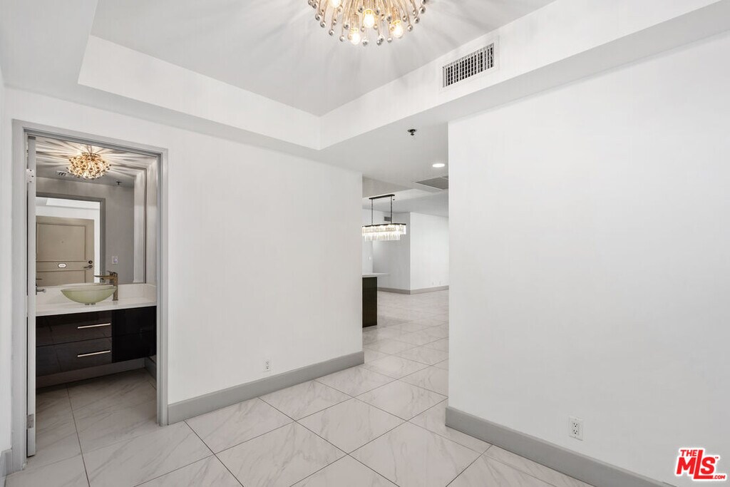 Exceptional Leasing Opportunity!!! Discover a sleek and chic, meticulously remodeled 2 bedroom, 2.5 bathroom condominium located in the Wilshire Manning, a full-service high-rise on the Wilshire Corridor. The residence features a formal entry leading into light-filled spacious living and dining areas. White porcelain floor tiles extend throughout the main living spaces, creating a bright and airy atmosphere. Floor-to-ceiling double sliding glass doors enhance natural light and showcase picturesque city and mountain views, while built-in custom cabinetry equipped with a wine fridge adds both style and functionality. The open-concept kitchen is outfitted with top-of-the-line Viking appliances and stylish, high-end cabinetry. A sizeable quartzite central island serves as the focal point, ideal for effortless entertaining and culinary creativity. The spacious primary bedroom features elegant wood flooring, double layered windows for shielding sound, and a large walk-in closet. The spa-inspired primary bathroom showcases a walk-in shower, concrete walls, and a double vanity, all embodying a clean, modern aesthetic. The secondary ensuite bedroom also features wood flooring, double layered window, a walk-in closet and a full bath, ensuring comfort and privacy for guests or family. A side-by-side washer and dryer are conveniently situated in the hallway, away from the kitchen for optimal functionality. Residence includes two separate parking spaces, with one equipped with its own EV charger for electric vehicles. Building amenities include 24-hour security and valet parking, an elegant lobby, fitness center, pool, and a conference room for residents. This home is move-in ready and offers a neutral palette, making it easy to personalize and create an ideal environment. Building is conveniently located close to 405 freeway, UCLA, Westwood, Century City and Beverly Hills...moments away from best shopping, dining and entertaining destinations. MLS# 25626489
