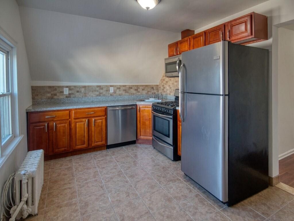 3rd Fl Walk-up, 3 family. Nestled on a lovely quiet, tree-lined block in Midwood. 3 spacious rooms. 1 Bedroom 13' X 12'. Large sun-drenched living room 15' X 12'. Enjoy the view with spectacular large windows overlook majestic trees leaves swaying in the wind! Freshly painted sparkling white contrasted with mahogany laminate floors throughout. Beautiful beige tiled Bathroom has a spectacular stand up shower & an area for towel cabinet. Hallway can fit bookcases or extra cabinets. LR Walk-in closet. Extra bonus closet in hallway for storage! Lovely EIK with stainless steel appliances: Refrigerator, Stove, Microwave and Dishwasher! Prefer No Pets No Smoking Rule landlord allergic. Must have: 40 X Rent income, good credit. Take Virtual Video Tour