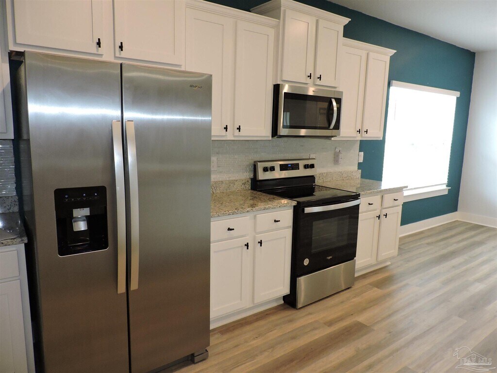 Beverly SullivanEasy access to shopping,interstate & Navy Federal complex! Less than 10 minutes from Navy Federal Credit Union Recreation Center. Open floor plan. Wood-look vinyl plank flooring throughout main living areas and carpet in the bedrooms. Great room with ceiling fan,boxed ceiling & recessed lighting. Living/dining combination. Fully equipped kitchen with island,granite countertops,stainless steel appliances and oversized pantry. Breakfast nook area. Main suite features boxed ceiling,ceiling fan,double vanity with granite countertop,garden tub,separate shower & oversized closet. Ceiling fans in all bedrooms. Inside laundry with washer & dryer - included - not warranted. Three car garage. Large covered back porch with ceiling fan. Large privacy fenced backyard with storage shed. Pets considered with owner approval.
