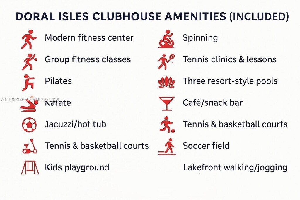 Perched on the 5th & top floor of exclusive Captiva Condo A within Doral's prestigious gated enclave, this stunning 3-bdr, 2-bth, ~1,700 sqft residence delivers sweeping, unobstructed lake views and the rare luxury of no neighbors above — absolute penthouse-level tranquility. Protected by unparalleled multi-layered security incl. guarded entrance & 24-hr patrol, residents enjoy full access to a world-class island clubhouse w/ resort-style pools, state-of-the-art gym, tennis & basketball courts, cabana, children's play area & private sandy beach. Inside, an open-concept split-floor layout flows across gleaming porcelain marble & wood floors, anchored by a contemporary kitchen w/ granite countertops, SS appliances & abundant cabinetry — perfect for daily living & elegant entertaining. The principal suite boasts a spa-inspired en-suite w/ bidet, dual sinks & sep. tub/shower plus direct balcony access, while 2 add'l well-sized bdrs offer versatile living space. A dedicated in-unit washer/dryer laundry room & assigned parking add exceptional everyday convenience. Water & all community amenities incl. in fees. A screened balcony frames breathtaking, serene lake views year-round, completing this move-in ready retreat. Just mins from top-rated schools, premier shopping, major hwys & MIA airport — a truly exceptional opportunity in one of Doral's most coveted & sought-after communities. MLS # A11969345