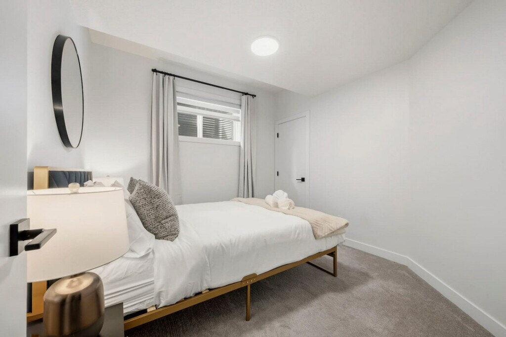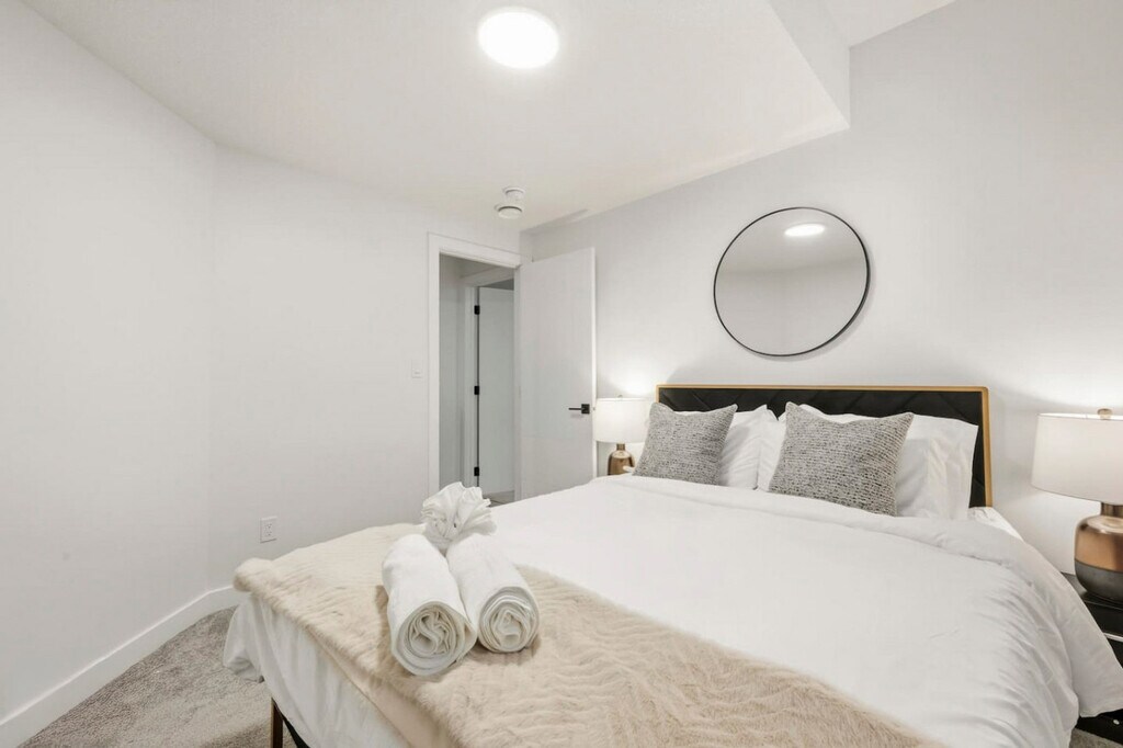 Feel at home in this modern 2-bedroom basement suite in the sought-after Queen Alexandra neighborhood, ideal for students, couples, or small groups. This inviting apartment features a fully equipped kitchen with stainless steel appliances including a microwave, fridge, and electric stove, along with glasses, mugs, dishes, and cutlery. A washer and dryer, detergent, iron, and ironing board are available for your convenience. Relax in the living room with your favorite shows on the smart TV and stay connected with fast Wi-Fi. Nestled in the heart of Edmonton, this apartment is located in the highly sought-after Queen Alexandra neighborhood. Known for its tree-lined streets and lively atmosphere, Queen Alexandra offers the perfect blend of historic character and modern convenience. Just minutes away, you’ll find the trendy Whyte Ave District, filled with boutique shops, art galleries, cozy cafés, and some of the city’s best restaurants. The apartment is within walking distance to the University of Alberta and provides quick access to the entire city. Families will love the nearby parks and endless opportunities for outdoor activities like walking, jogging, and cycling. The central location ensures easy access to downtown Edmonton and Rogers Place, with excellent public transit options close by. Quiet hours are from 10 PM to 8 AM. A $500 fee will be charged if there is evidence of any unauthorized events or parties on the property. Pets are not permitted in the apartment. A $250 fee will be charged if there is evidence of any unauthorized pets in the property. Smoking (including cigarettes, marijuana, or vaping) and drug use are strictly prohibited. A $250 fee will be charged if there is evidence of smoking inside the apartment. The maximum number of guests is 4. Unauthorized guests will be asked to leave, and unregistered guests will incur a $40 fee per person per night. This unit does not have air conditioning, however, fans are provided for your comfort. Fast Wi-Fi is available. Registration Number: 631007275-001 [SI]