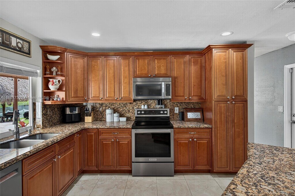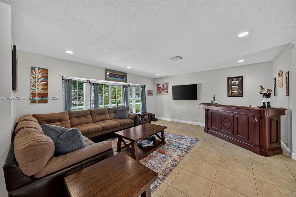 LUXURY OASIS ON A SPRAWLING BUILDERS ACRE-LAKEFRONT LOT IN DAVIE WEST! FABULOUS TURNKEY 3 BEDROOM - 2 BATH + FLEX ROOM. RANCH STYLE HOME W/ OVERSIZED PAVED DRIVEWAY. DESIGNED FOR ULTIMATE COMFORT & UNFORGETTABLE ENTERTAINING. BACKYARD SHOWCASES TRAVERTINE AROUND SALT WATER POOL W/ SWIM UP BARSTOOLS. TIKI BAR, LARGE COVERED PATIO, FENCED YARD W/ SPACIOUS DECK ON THE LAKE, PERFECT FOR FISHING! KITCHEN HAS EXPANSIVE STORAGE, WOOD CABINETS, PASS THRU WINDOW, GRANITE COUNTERTOPS W/ LARGE ISLAND & EAT IN COUNTER, NEW FLAT ROOF W/WARRANTY, APPLIANCES & WATER HEATER. RENOVATED BATHROOMS & BEDROOM FLOORS. PRIMARY SUITE W/ WALK IN CLOSET. HURRICANE IMPACT WINDOWS & DOORS. NEW SPRINKLER SYSTEM RUNS OFF LAKE. EXCELLENT SCHOOLS. COMMUNITY IS BOAT & RV FRIENDLY. POOL & LAWN INCLUDED IN RENT.
