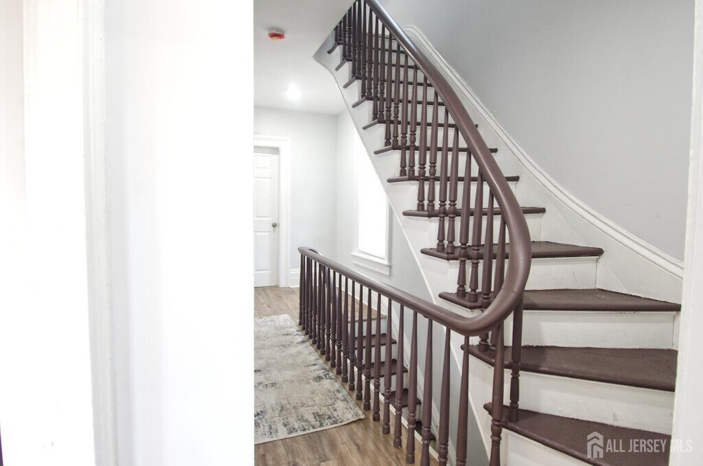 Spacious duplex apartment offering nearly 1,900 square feet of living space,located on the second and third floors,featuring three bedrooms plus a bonus room in a bright,penthouse-style layout. This oversized unit lives more like a townhouse than a traditional apartment,with multi-level living,large rooms,and abundant natural light throughout. Enter through a private foyer with its own entrance leading to the main level,where you will find an open-concept living room and modern kitchen featuring gray shaker cabinets,white quartz countertops,stainless steel appliances,and two pantry closets giving you plenty of storage space. A convenient in-unit washer and dryer are also located on this level,and modern oak-tone LVP flooring runs throughout the entire home,giving the space a clean and updated feel. The second floor also includes a fully renovated full bathroom with subway tile and modern fixtures,along with a bonus room that can be used as a home office,nursery,guest room,or additional flex space. Toward the rear of this level there is a dedicated staircase that leads directly to the shared backyard,where you will also find the second full bathroom located near the rear exit for added convenience. A spiral staircase leads to the third floor,which offers three bedrooms,including two very large bedrooms with generous closet space and great natural light,creating a comfortable and spacious upper level. This unit also includes a private driveway with parking for one car,along with plenty of street parking available at all times. The layout,size,and multi-level design make this home ideal for anyone needing extra space,working from home,or sharing with roommates. Located just steps from the Rahway train station,and minutes to major highways,shopping,restaurants,and everyday conveniences,this is an excellent option for commuters while still offering a large living space rarely found in rental units. Vacant and ready for immediate occupancy,priced to rent quickly. Schedule your showing today.