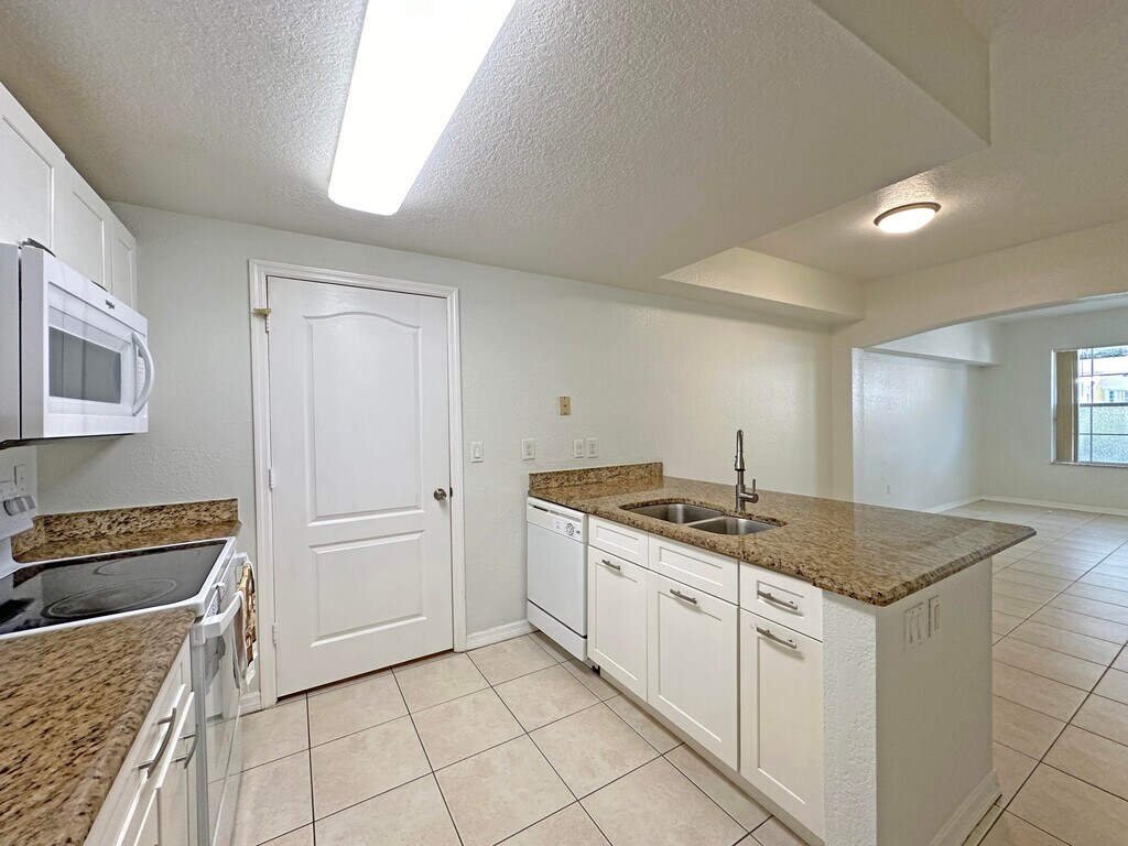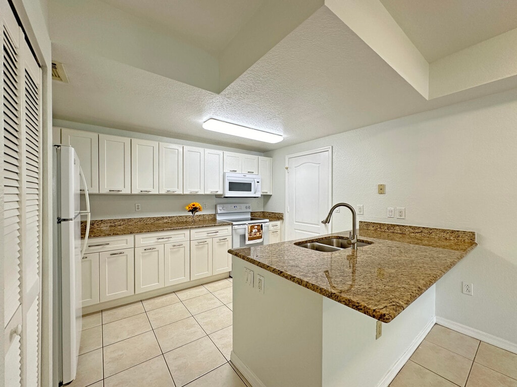 Welcome home to this impeccably designed 1st floor, 1 bedroom, 1 bath unit where a seamless blend of style and functionality awaits. This condo is ready for your personal touch to transform it into your ideal home. The kitchen showcases elegant granite countertops & boots lots of cabinets space. Tile throughout main areas, plush carpet in bedroom which features a spacious walk-in closet. Unit also features windows that fill the space with natural light. Experience the perfect blend of convenience and style with a separate laundry room with a full-size washer and dryer. Unit also comes with the added benefit of an assigned parking spot, ensuring both comfort and practicality in your everyday living. Welcome to a residence that harmoniously combines location, aesthetics, and functionality.