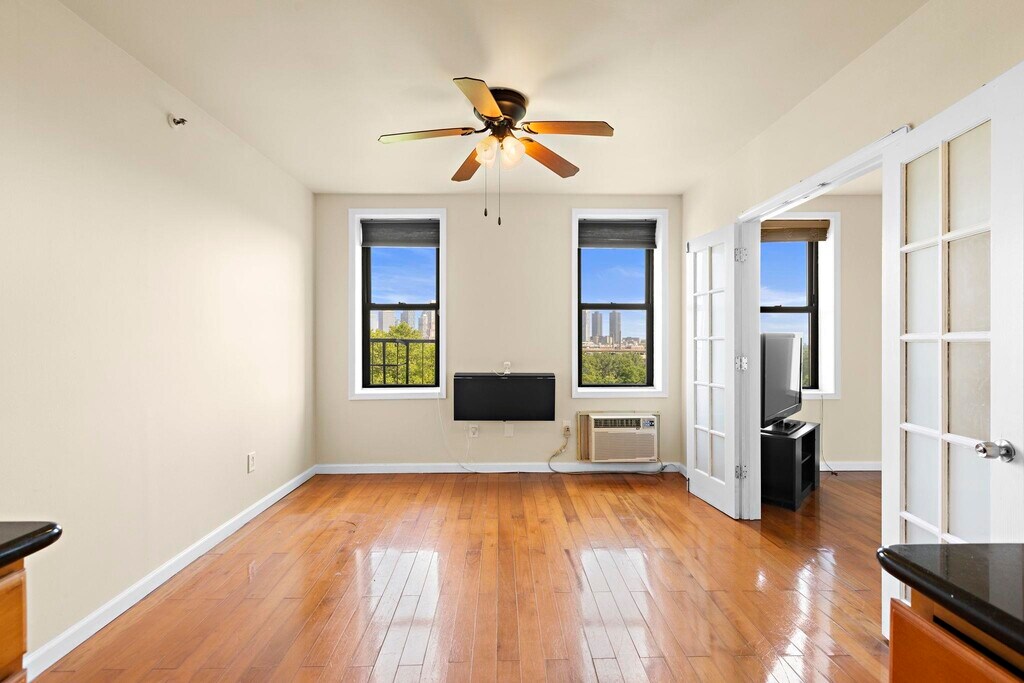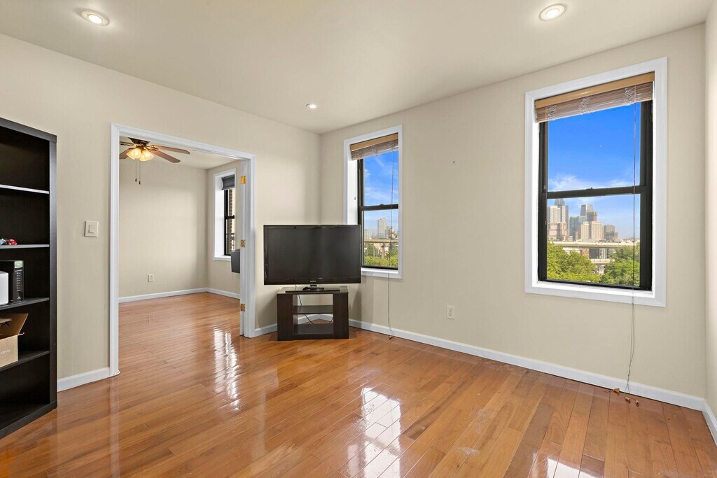 SAQUIB RAHIMEnjoy views of the New York City skyline and Downtown Jersey City right from your living room in this sun-drenched 2-bedroom condo. With generous bedroom sizes, ample closet space, and beautiful hardwood floors throughout, this home offers both comfort and style. The bathroom has space to install a private washer and dryer, and there’s also shared laundry available in the building. Located just one block from the vibrant Village neighborhood, you’re steps away from all that Downtown Jersey City has to offer — boutique cafes, top-rated restaurants, local markets, gyms, and cozy wine bars. Take a stroll to Hamilton Park, spend a weekend at the farmer’s market at Grove Street, or enjoy the waterfront promenade at Exchange Place. Commuting is easy with the JSQ PATH just 10 minutes away and the Grove St PATH within 15 minutes. Street parking is plentiful with permit options, and nearby garages offer convenient alternatives. Located in a charming walk-up building, this home delivers the best of city living with a welcoming neighborhood feel.