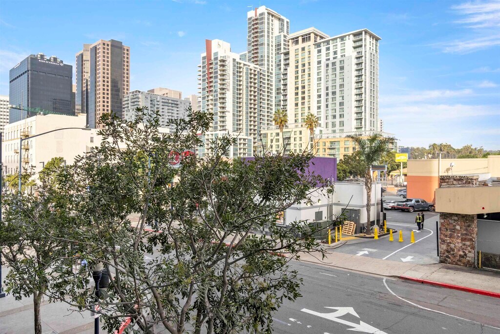 Experience vibrant downtown living at Smart Corner, where convenience meets contemporary style. This modern studio features fresh interior paint, brand-new carpet, and updated bathroom finishes. The open, light-filled layout highlights exposed concrete accents and floor-to-ceiling windows that capture city views and natural light. Located just steps from the trolley stop and offering quick access to the 5, 163, and 94 freeways, commuting is effortless. Enjoy the ultimate in urban convenience with on-site retail options, including Starbucks, Subway, and 7-Eleven right downstairs. This condo also includes one dedicated parking space in the underground garage. Residents at Smart Corner also enjoy premium amenities, including a rooftop spa with panoramic city views and a fully equipped fitness center. Perfect for those who appreciate modern design, walkable city living, and all the energy downtown San Diego has to offer.