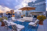 Very Rare 18th-Floor Penthouse Unit Smart Corner, Downtown San Diego, 1000 sq ft. Quiet 18th floor loft with unobstructed east-facing views of the city and mountains. This rare 18th-floor unit features high concrete ceilings, floor-to-ceiling windows, and an open floor plan filled with natural light. Interior includes new flooring throughout, custom wood cabinet doors, and custom door accents. Two private balconies provide excellent outdoor space with panoramic views. Remodeled kitchen features stainless steel appliances, dishwasher, granite countertops, and ample cabinetry. Brand-new GE in-unit washer and dryer included. Bathroom includes a sunken tub. Unit comes with one assigned parking space in the secure gated garage. Additional street parking is available on the adjacent block. Building offers a fitness center, rooftop patio with BBQ areas, and a Jacuzzi overlooking downtown. The building has fewer occupants than typical downtown high-rises, offering additional privacy and quiet living. Central air conditioning, energy-efficient systems, and smart home features included. Pet-friendly community dogs welcome with no additional deposit. Wheelchair accessible. Renter's insurance required. Located in the heart of downtown near Balboa Park, Little Italy, and the Harbor. Easy access to restaurants, shops, and major freeways.