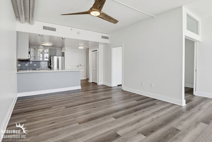Bright and Open 1Bdm 1Ba Modern Condo in Downtown San Diego’s Smart Corner Community. The living room features an open floor plan with high ceilings, large windows for abundant natural light, and access to a private balcony with beautiful city views. The kitchen offers a sleek modern design with quartz countertops, glass cabinet accents, and ample storage, and comes equipped with Range/Oven, Built-In Microwave, Refrigerator, and Dishwasher. Side area room is ideal for a dining room or office space. The bedroom features a spacious layout with modern sliding doors, and plenty of closet space. The bathroom includes a modern vanity and a full shower/tub combination with updated fixtures. Conveniently comes with A/C to keep you cool year round, and 1 assigned garage parking space. Community amenities include secure subterranean parking, a rooftop lounge with a spa, and a fitness center. Located in Downtown San Diego near shopping, restaurants, Petco Park, Gaslamp Quarter, City College, trolley lines, and easy freeway access. HOA move-in requirements to be covered by the tenant. HOA covers Water/Sewer/Trash. Tenant pays all other Utilities. HOA responsible for regular Landscaping service. Pets with approval via process; Total Listed Monthly Price includes Base Rent, plus Pest Share Program ($18); Prior to viewing, please review tenant leasing charge disclosure at our website This property allows self guided viewing without an appointment. Contact for details.