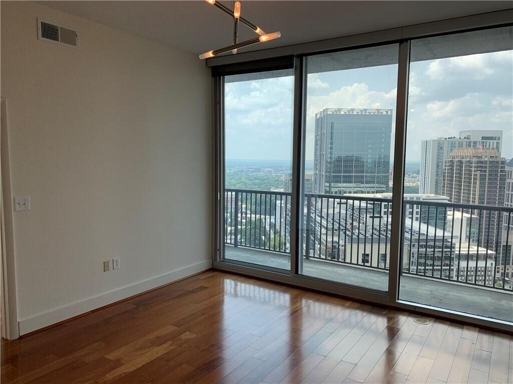 MAGNIFICENT VIEWS! Live in the Heart of Midtown Mile! Home includes stainless steel appliances (Frig,Stove,Dishwasher,&Microwave),Stackable W/D,5"BrazHW Floors thru-out entire home (tile floor in bath),Granit Counter Tops in Kitchen/Bath,Blinds/Shades on ALL Windows,10'Ceiling (ceiling to floor windows),Huge Balcony,One Covered/Assigned Parking Space in Garage (#394),& Amenities Galore (Pool,Fitness,24/7 Concierge,Sky Park,Clubroom,& More)! Walk to Restaurants,Shops,Piedmont Park,MARTA,Museums,Art Galleries,& MORE!!! Monthly Flat rate utility fee of $115.00 (1 person) or $155.00 (2 people) toward technology,water,sewer & trash services. Wonderful building amenities including concierge,beautiful pool,state-of-the-art fitness room,club room,with billiards table. Covered,secured,reserved parking. Pets negotiable. No smokers please. ***** SQ FT FROM PUBLIC RECORD. We look forward to having you as a tenant! MLS ID 7728808
