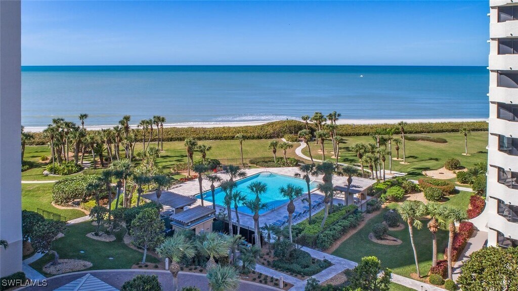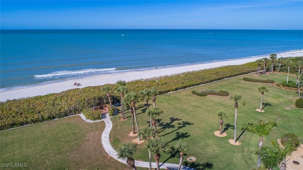 Incredible Gulf and Beach views from this 5th floor,2 bed 2 bath unit. Upon entering the gates of this amazing community you will be mezmerized by the surrounding beauty from the 8 acres of tropical surroundings,40X60 heated swimming pool,two tennis courts,Tesla charging stations,barbecue grill area and exercise facility! This community has over 750 feet of beach frontage with private walkways to the sandy white beaches. Fabulous responsive on site management,seasonal support during peak season! Walking distance to La Playa,Turtle Club and Ritz Carlton!! This unit has been updated and renovated to perfection! Hard wood floors,terrazzo tile,custom built ins,granite counter tops and stainless appliances exude elegance and comfort! Expansive views and sensational sunsets can be enjoyed from the Den,Living room,master bedroom and lanai. Master bedroom offers a king sized Tempur-pedic mattress,and 55" Samsung Smart TV. Guest bedroom features a king sized mattress and 55" Samsung Smart TV. Livingroom includes a 75" Samsung Smart TV with Sonos sound system and speakers .California Closets in master and guest bedrooms! Incredible Opportunity to live the Naples lifestyle!