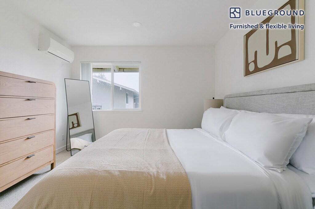 Feel at home wherever you choose to live with Blueground. You’ll love this stylish Cupertino furnished two bedroom apartment with its modern decor, fully equipped kitchen, and bright living room. Ideally located, you’re close to all the best that Cupertino has to offer! (ID #SFO2086) The advertised rate of $3,400/month is the lowest available price, based on a 2 month(s) and 28 day(s) stay with a move-in date of November 24, 2025. If you’re looking for a 1-year stay, the rate is $4,340/month. Rates vary depending on the duration of stay, season, and other parameters. For exact pricing and additional pricing components, please visit our website and enter your desired move-in and move-out dates. The rate is applicable when billed upfront; it can be higher if billed in multiple payments. Brokers are welcome to reach out. Were you looking for an unfurnished lease? Try Blueground instead and upgrade from unfurnished to furnished living: - Furnished at rates comparable to unfurnished - No setup or furniture costs - save thousands - Move-in ready - save time, just bring your suitcase Designed with you in mind As with any Blueground apartment, you’ll find a thoughtfully designed space complete with beautiful furniture and a fully equipped kitchen in this two bedroom property. And, thanks to our superior quality mattresses, luxury linens, and towels, you can relax knowing you’ll always feel comfortably at home. When you’re ready for some fun, you can take in the Cupertino vibes or bring the entertainment to you with the premium wireless speaker or smart TV. This apartment also offers in-apartment laundry. Sleeping arrangements King Bed, 70.8in/180cm Queen Bed, 63in/160cm Amenities Building amenities unique to this two bedroom apartment include an on-site: - BBQ Area - Dryer - Swimming pool - Washing machine - Media room - Parking - Pets allowed Arrival and ongoing support The entire apartment is yours to enjoy! Throughout your stay, you’ll have access to our Client Experience team through the Blueground App. You can schedule additional cleanings, submit maintenance requests, and view our neighborhood recommendations with just a few taps. We’ll share all details upon confirmation of your stay. Ideally Located This furnished home is located in the city of Cupertino, where the Apple headquarters is located. Many come to visit the Apple Park Visitor Center which has an Apple Store, Cafe Macs coffee bar and an observation deck. Calling Cupertino home means being close to The Picchetti Winery, a local winery and the De Anza College Fujitsu Planetarium that offers astronomy shows and laser displays. For recreation, residents of Cupertino spend time at Rancho San Antonio Open Space Preserve. It has over 24 miles of hiking trails, an education center and working farm. Other things to note Building amenities may have an extra cost. This Blueground apartment has flexible lease options, allowing you to book it for one month, a year, or more. Pets are welcome, though weight limits and breed restrictions apply and may incur fees. Parking is offered based on availability and is subject to a fee. Please keep in mind that this is a walk up building. We take great pride in ensuring every photo displayed is shot in our own units with our actual furnishings. That said, we regularly refresh our decor and furniture arrangement, which may differ from what’s pictured. Also note - There are stairs leading up to the entrance of this apartment, but no elevator [SI]