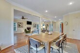 Welcome to this charming retreat nestled between the vibrant heart of downtown Savannah and the pristine sands of Tybee Island beach. This idyllic home offers a serene escape with its stunning outdoor oasis, boasting a picturesque lake view, a private dock, and a bubbling hot tub to unwind in style. Embrace the tranquility of the surrounding greenery while lounging in the outdoor seating area, enveloped by the enchanting ambiance of the lush trees. Inside, each room is a haven of comfort and privacy, with its own private bathroom. The thoughtfully adorned interiors exude warmth and character, creating a welcoming atmosphere for guests to revel in. Experience the perfect fusion of convenience, natural beauty, and thoughtful elegance during your stay in this enchanting Savannah gem. Three of the bedrooms are located in the main house, while the carriage house features both a queen bed and a futon. Early check-in requires preparing the property ahead of schedule, which involves additional effort. Early check-in is available for a fee of $45 if the check-in time is between 12:00 PM and 3:00 PM. Early check-in is subject to the availability of the property, the cleaning schedule, and whether there is a guest checking out on the same day as your arrival. Early check-in can only be confirmed by the end of the day prior to your scheduled check-in date. It's a very peaceful family neighborhood. The home is on a private lake maintained by the neighbors which also includes stocking it with fish, so taking fish out of the lake is not allowed. This is a quiet family neighborhood, so refrain from outdoor noise from 9:00 PM to 8:00 AM. No parties, events, or gatherings are allowed. Smoking or vaping of any kind is not allowed, and a $200 fee will be charged for violations. The property has a main house with three bedrooms and a carriage house with one bed and a futon. The main house and the carriage house can be rented separately or together. The driveways and parking are shared between both. Do not exceed the maximum number of guests listed for the home. Locals must contact the host prior to booking. Leave all common areas clean and as you found them when you arrived. This includes washing your dishes and leaving the kitchen area clean. No food or drinks in bedrooms. Early check-ins or late departures without prior approval are not allowed. No refunds are issued for late check-in or early departure. The property requires identity verification on all guests age 18 years or older and a completed profile. Guests should be responsive and reachable through the platform from the time the reservation is made through the completion of their stay. There is one security camera in the driveway and one video doorbell at the front door for security purposes. Do not move any furniture or decorations within the premises. Do not use the provided towels to remove makeup or clean something that could stain them. A starter pack of essentials is provided, and additional items can be purchased by the guests at a nearby supermarket or convenience store. Usage of the hot tub as well as going into the water either by swimming or kayak is at your own risk. There is a noise monitoring device from Minut which measures decibel levels. It does not record audio for privacy reasons. If the device is tampered with, a notification will be sent. [SI]