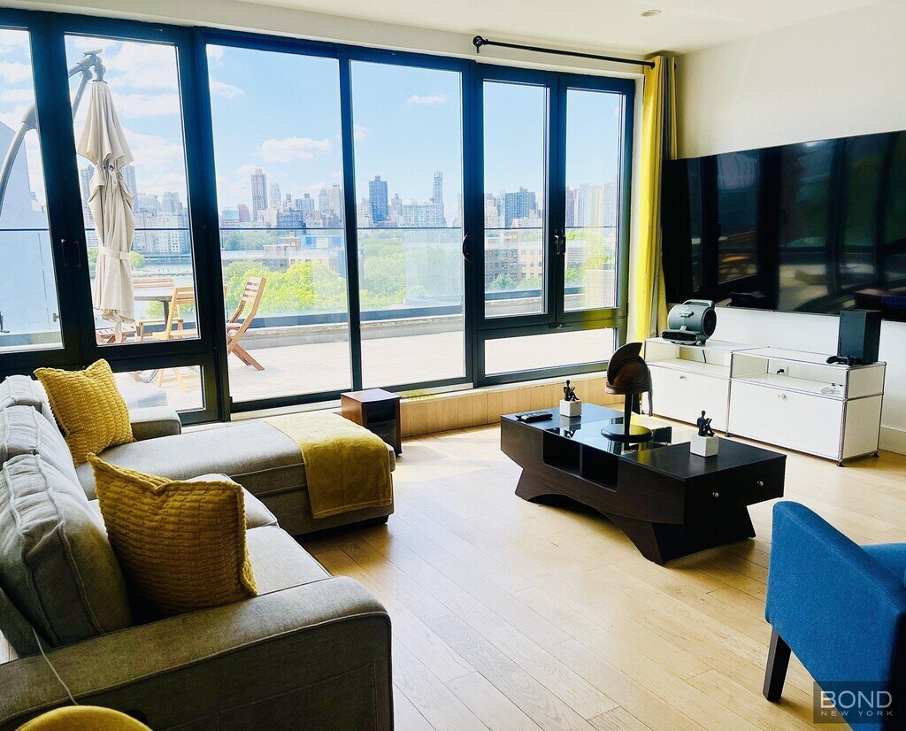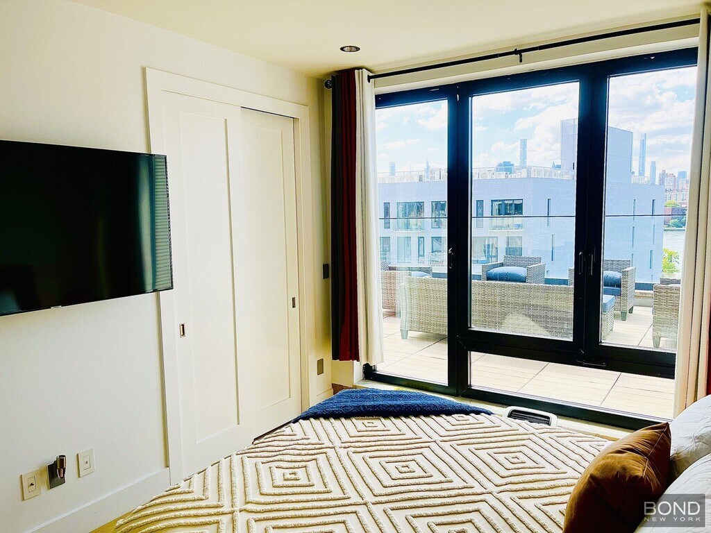 Penthouse A in Graffiti House is a beautiful one bedroom with an enormous outdoor patio facing the water, and Manhattan skyline! The unit boasts a complete kitchen with stainless steel appliances gas stovetop and convertible oven washer/dryer dishwasher and wine cooler. The livingroom has a beautiful skyline view facing the rare outdoor space!! Steps away from the Ferry, and several buses. Close to Astoria Park and several other parks within the Arts District of Astoria.BOND New York Properties is a licensed real estate broker that proudly supports equal housing opportunity.
