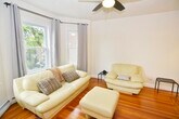 Excellent central location near everything in Jamaica Plain, this sparkling, bright apartment comes with 2 bedrooms/2bathrooms, kitchen, living room, dining room or an in-home office. Parking included! Beautiful interior with lots of light and lovely hardwood floors. Master bedroom ensuite bathroom. Eat-in-kitchen has gas stove, microwave, dishwasher, disposal, convenient in-unit washer and dryer, and recessed lighting. Back deck overlooks a huge shared grassy yard with patio and gardening areas. The shared driveway allows parking for one car. Bike storage available in the shed. CENTRAL location is close to Emerald Necklace Parks, Jamaica Pond, Arnold Arboretum, Loring-Greenough House, Boston PublicLibrary, markets, shops, restaurants, cafes. Easy access to MBTA buses at the Monument or the MBTA at either Green Station Forest Hills Stations. Easy commute to all locations: Longwood Medical, Downtown Boston, Back Bay, Rte 9. West. No smoking. No pets.