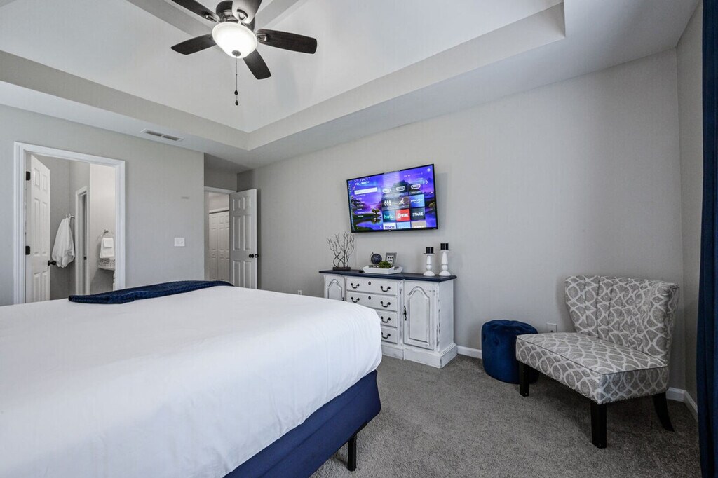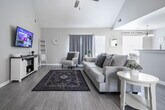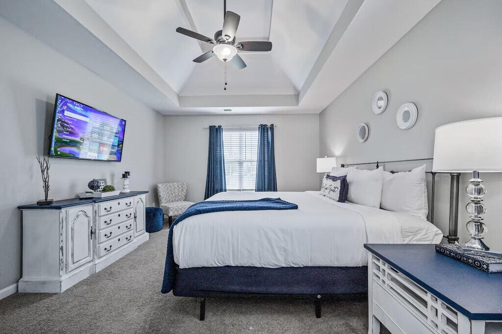 Stay in style and comfort at this fully furnished, single-level 3-bedroom, 2-bath home, designed for extended stays, relocations, or relaxing getaways. Located just 20 minutes from downtown Cartersville, 12 minutes from Barnsley Resort, and 30 minutes to LakePoint Station, this modern home offers easy access to the best of the area. Inside, you’ll enjoy a king-size master suite with fresh linens and a Smart TV, two queen-size guest bedrooms each with a Smart TV, and an open-concept living room with a Smart TV for streaming. The renovated kitchen boasts granite countertops, stainless steel appliances, and new tile flooring, complemented by a dining area and fully stocked kitchen essentials. For outdoor cooking, a propane grill is available, and high-speed WiFi is accessible throughout the home. A welcome tray with snacks and Keurig K-Cups adds a special touch. The property offers a 2-car garage and driveway parking. Children and pets are welcome, with pet fees applying. Pets require approval before check-in, with fees varying based on the length of stay: $25 per pet per night for 1-6 nights, $15 per pet per night for 7-28 nights, and $10 per pet per night for stays of 29 nights or more. Extended-stay cleaning costs apply, with a mid-stay clean required for stays of 40-60 nights and a deep clean for stays over 60 nights. Any additional cleaning or restocking requests are charged separately. The home is conveniently located just 20 minutes from downtown Cartersville, 12 minutes from Barnsley Resort, and 30 minutes to LakePoint Station, providing easy access to the area's top attractions. This is a non-smoking property and no events are permitted. While the home is single-story with wheelchair-friendly entry doors, the interior doorways do not meet ADA clearance requirements for wheelchair accessibility. Pets require approval before check-in, and the daily pet fee is an occupancy fee, not damage protection. The standard cleaning fee covers the initial checkout clean, with any mid-stay clean, deep clean, restocking, or extra inventory requests charged separately.