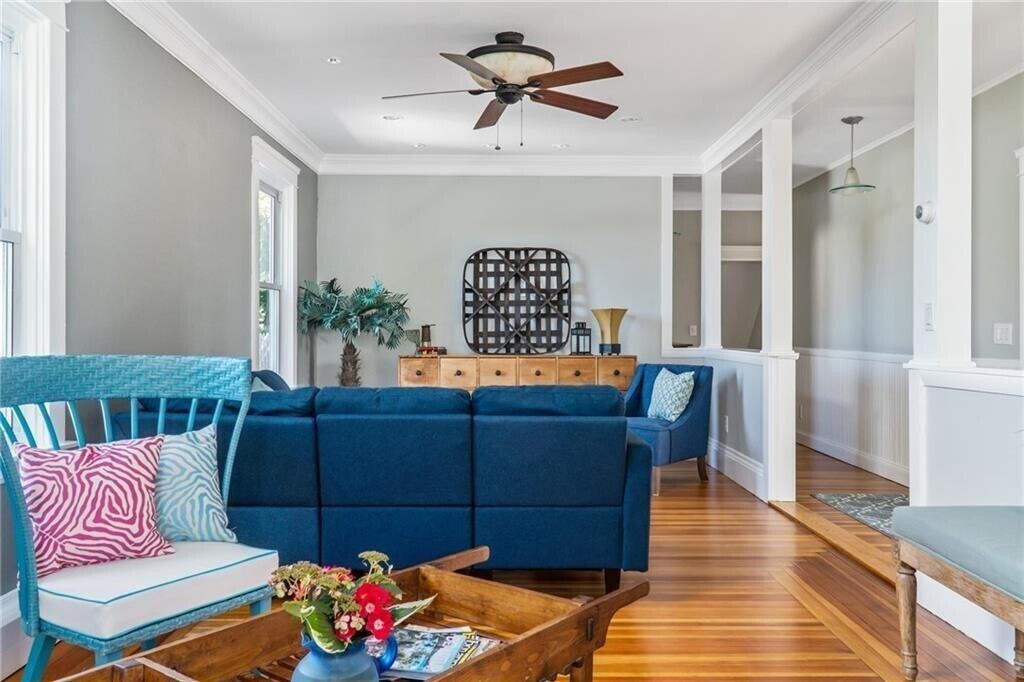 AVAILABLE September 8 2026 - MAY 18 2027. Fully furnished with water views and steps to the beach! Newly renovated 4 bedroom 2 bathroom bungalow with hardwood floors,fresh paint,large and open kitchen/dining area/ living area with elegant furnishings throughout. Also boasting a brand new deck,yard,ample off street parking for guests and in unit washer and dryer. Leave your vehicle and walk across the street to the beach or skip the restaurant and grill on your deck!