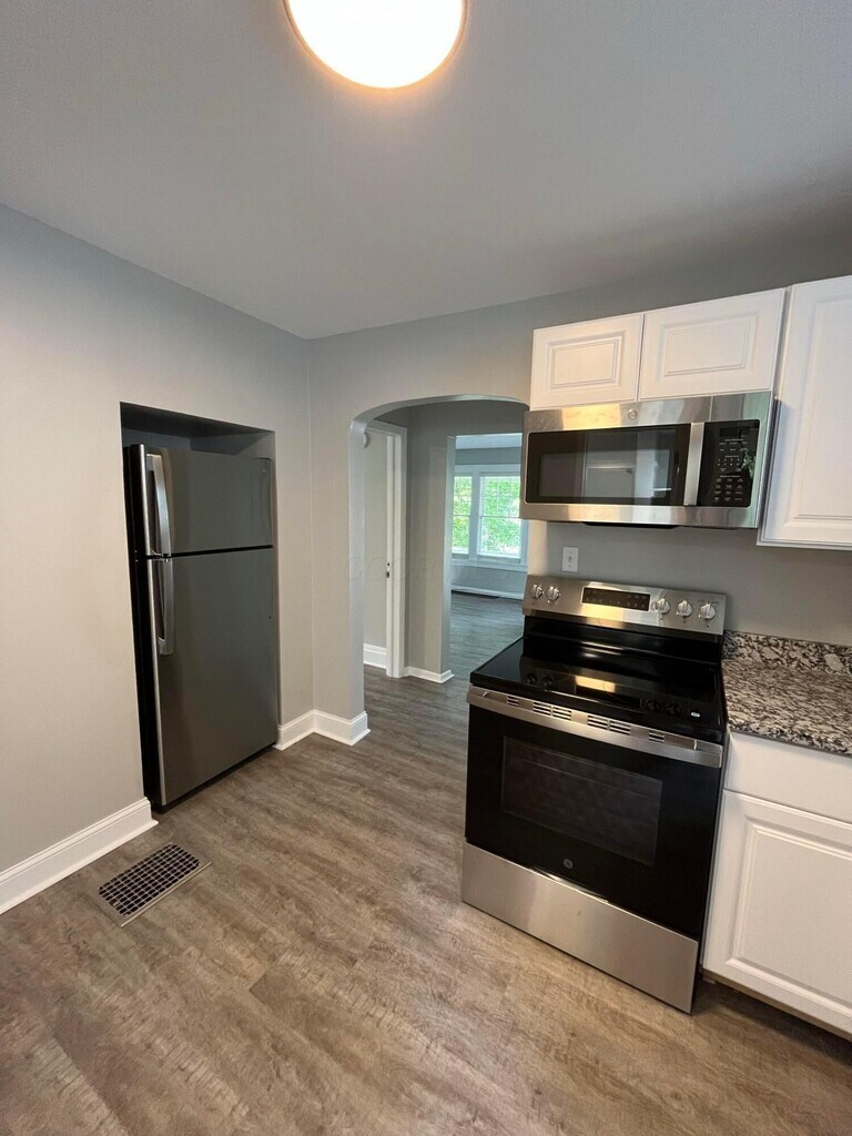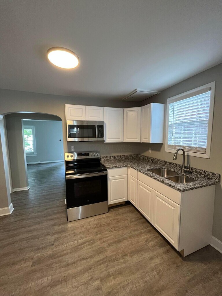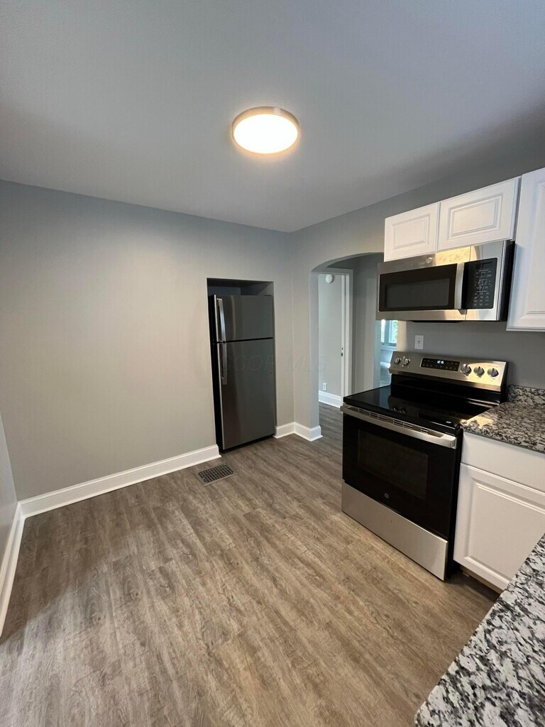 This beautifully renovated 1-bedroom, 1-bathroom apartment offers modern updates in one of the most sought-after locations in Columbus. Just off High Street and close to The Ohio State University campus, you’ll be surrounded by countless local shops, restaurants, and coffee houses. The home features luxury vinyl plank flooring throughout and a spacious living room with a decorative brick fireplace that adds character and charm. The kitchen has been fully updated with stainless steel appliances, crisp white cabinetry, and granite countertops. The bathroom feels like a spa with a custom tiled walk-in shower and all-new fixtures. A full basement with washer and dryer hookups provides added convenience and extra storage space. An oversized front porch and shared backyard space provide additional outdoor living areas, and garage parking is available for an additional fee. With its combination of modern finishes and prime location, this apartment offers both comfort and convenience.