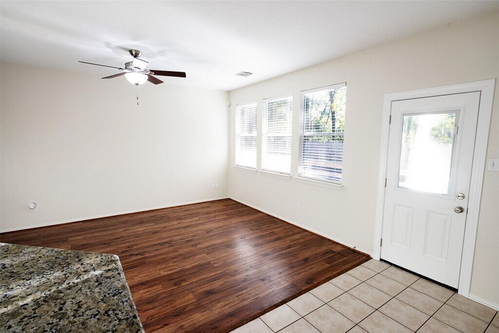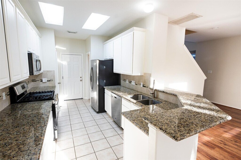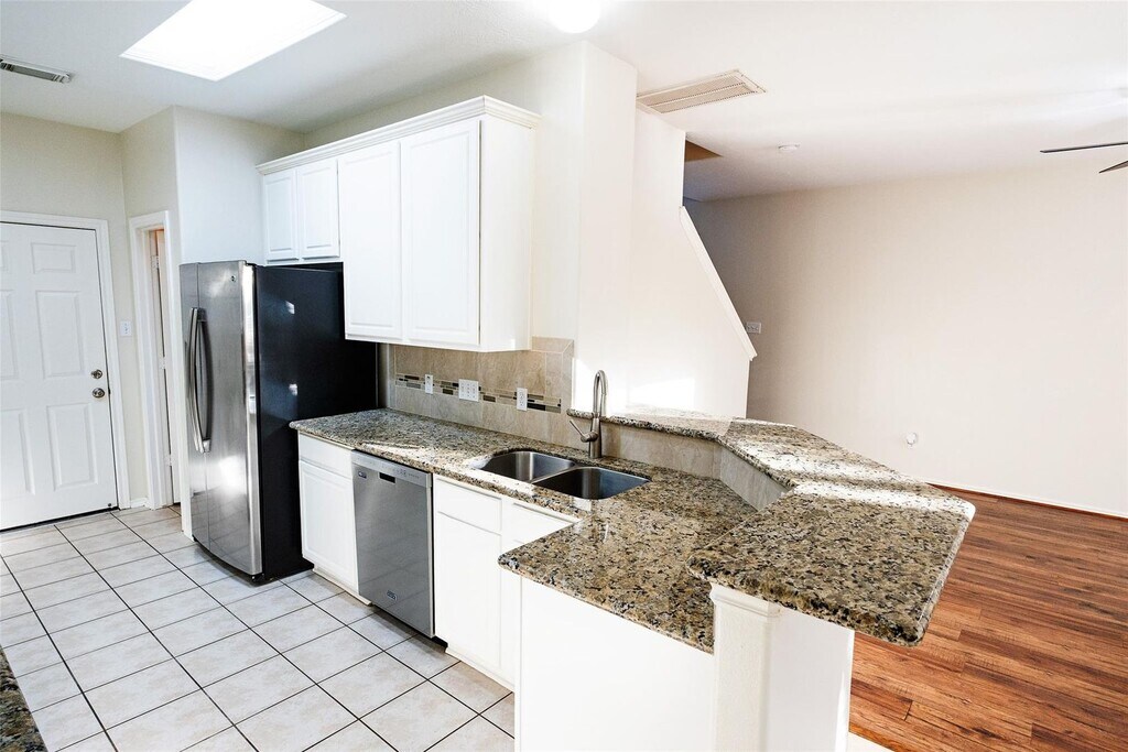Courtesy of Walzel Properties - Corporate Office This well-kept, move-in-ready townhome offers brand-new carpet, granite countertops, no rear neighbors, and an open layout flowing from the living area to the breakfast nook and spacious kitchen with two pantries, plus an upstairs loft, 3 bedrooms and 2.5 baths—including a private ensuite in the primary—along with a large private deck, abundant natural light, included refrigerator/washer/dryer, and a great location near top schools, parks, and outdoor activities.