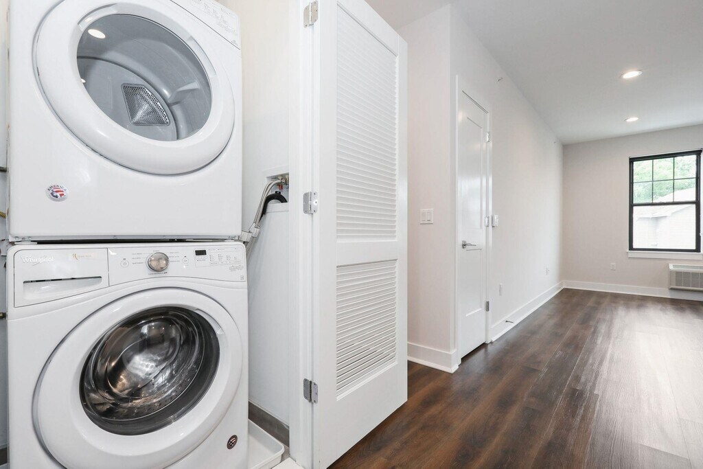 What meets the eye is a boutique building that stands out from the rest with its polished, yet classic exterior. The kitchen is where the heart of your home is. Finished with white quartz countertops and equipped with state-of-the art Whirlpool stainless steel appliances, ample soft-close cabinetry, and recessed lighting, every kitchen is a chef's dream. Our oversized bedrooms offer huge closets to hold your laundry, fresh from the full-sized washer/dryer in each unit. Every home benefits from thoughtfully chosen construction materials to assure privacy and comfort. All units boast grand scale Pella windows with custom solar shades, high-efficiency heating and cooling. One car parking included and NO FEE!