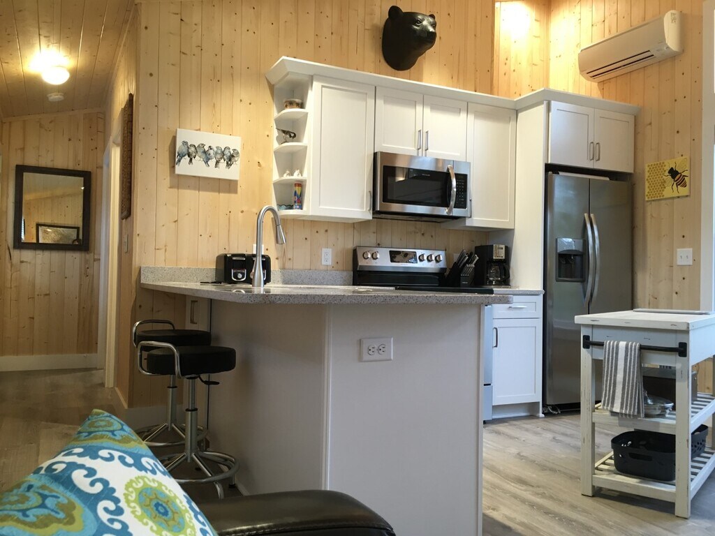 Rick WilsenThis charming "treehouse" was lovingly constructed by a local father/son team of craftsmen builders in 2020 It is now available for that special someone who is eager to explore all that charming Black Mountain has to offer. Modern kitchen appliances and sleek quartz countertops. Full-sized washer and dryer. Tastefully turnkey-furnished, with a leather sleeper sofa in the living room for relaxing. Beautiful vinyl plank flooring stretches end-to-end. Tongue-in-groove pine paneling covers all the walls and ceilings. The screened and covered porch was made for lounging and for viewing the Seven Sisters mountain range. Bali black-out shades in the bedroom make for relaxing nights. Ceiling fans in every room cool the warmest days. Super-convenient location in charming Black Mountain. The myriad of downtown restaurants and shops are within walking distance. Head north a block and encounter one of Black Mountain's favorite attractions - the half-mile walking path around Lake Tomahawk. Or, indulge in your favorite sport - tennis, pickle-ball, basketball, and soccer courts and fields are just across the street! The 65-foot graveled landscape walkway from the parking pad to the cabin terminates in a broad 12-step stairway to the porch entrance. From its perch, the porch beckons you to leave your cares and concerns below and beyond. Because this is a newer cabin, we are committed to finding that SPECIAL SOMEONE who will lovingly care for it. For that reason, we cannot accept smoking, either inside or outside, and prefer no pets, but would consider a well-behaved, non-barking dog. The cabin is TURNKEY FURNISHED - right down to the linens and silverware. To avoid wear and tear, we prefer that someone stay at least six months. ALL UTILITIES ARE INCLUDED, as is lawn care, so you can avoid the hassle of utility hook-ups and deposits. If you are a first class person looking for a first-class home, let's talk!