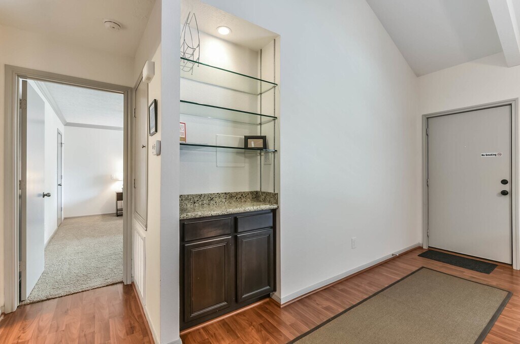 Step into this beautifully updated 1st floor condo featuring 1 bedroom,1 bathroom,and private parking in a prime Galleria location. This home is packed with upgrades,including engineered hardwood floors,modern light fixtures,elegant crown molding,and improvements such as double-pane windows. Enjoy an open layout ideal for entertaining. The kitchen boasts crisp white cabinets,Quartz countertops,and SS appliances. The living room offers a wood-burning fireplace and a wet bar,creating a warm and inviting atmosphere. Unwind in the primary suite,featuring two walk-in closets with custom built-ins. The elegant bathroom has been updatd with white shaker cabinets,Quartz counters,and a large walk-in shower with modern tile surround. Step outside to your private,fully fenced covered patio,perfect for relaxing or entertaining,complete with an outdoor storage closet for added convenience. Includes: water,sewer,trash,fridge,washer/dryer. MLS# 76798883