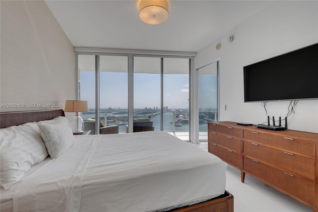 pectacular water views from this stunning corner residence in Downtown Miami. This fully furnished 3-bedroom, 2.5-bath home features floor-to-ceiling impact windows, abundant natural light, and a private foyer entry. The open-concept layout includes a gourmet kitchen with Viking appliances, spacious living and dining areas, and a large terrace. Motorized shades and blackout treatments throughout. All bedrooms offer sweeping water and city views. Full-service building amenities include 24-hour concierge, an 8,000 SF spa and fitness center overlooking Biscayne Bay, yoga and spinning studios, cardio room, sauna and steam room, full-service spa, pool deck with tower service, juice/snack bar, valet, and secure self-parking. No pets permitted for tenants per building rules. Minimum 1-year lease required. Tenant occupied until June 15, 2026. MLS # A12002402