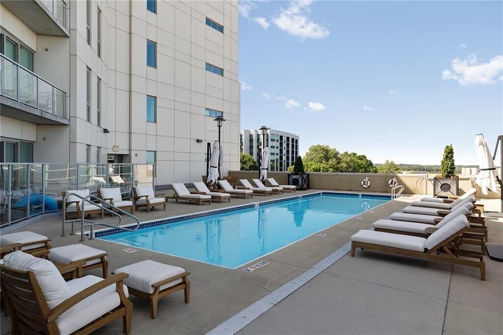 Exceptional 7th Floor Unit with Unobstructed Skyline Views in the White Provision Residences of West Midtown! This beautifully appointed 7th-floor,east-facing unit at the highly sought-after White Provision Residences offers breathtaking skyline views from every room and one of the most functional and desirable floorplans in the building. Located in the heart of Atlanta’s vibrant West Midtown and Historic Meatpacking District,this home delivers the perfect blend of luxury,comfort,and convenience. The open-concept layout features 10-foot ceilings and expansive floor-to-ceiling windows that flood the living,dining,and kitchen areas with natural light. A true chef’s kitchen anchors the space,complete with an oversized island,Silestone countertops,tile backsplash,solid wood cabinetry,a pantry,and premium KitchenAid stainless steel appliances. Unlike many units in the building,this home includes a dedicated dining area—ideal for both everyday living and entertaining. Step out onto the private walk-out balcony to take in stunning,unobstructed city views. The spacious primary suite easily accommodates a king-sized bed and boasts a spa-inspired en-suite bath with double vanity,a seamless glass walk-in shower,and a separate soaking tub. A well-proportioned secondary bedroom offers flexibility for guests,a home office,or both. Ample closet space and thoughtful design details,including Kohler fixtures,add to the home’s luxurious feel. Residents enjoy access to top-tier amenities including 24-hour concierge service,gated and secured parking,a rooftop pool with panoramic views,a fully equipped fitness center,and a stylish resident club room. Just steps from award-winning restaurants,boutique shopping,and top entertainment venues,this location offers easy access to Downtown Atlanta,Buckhead,Midtown,Virginia-Highland,and Inman Park. This is an outstanding opportunity for buyers seeking upscale intown living in one of Atlanta’s most dynamic and walkable neighborhoods.